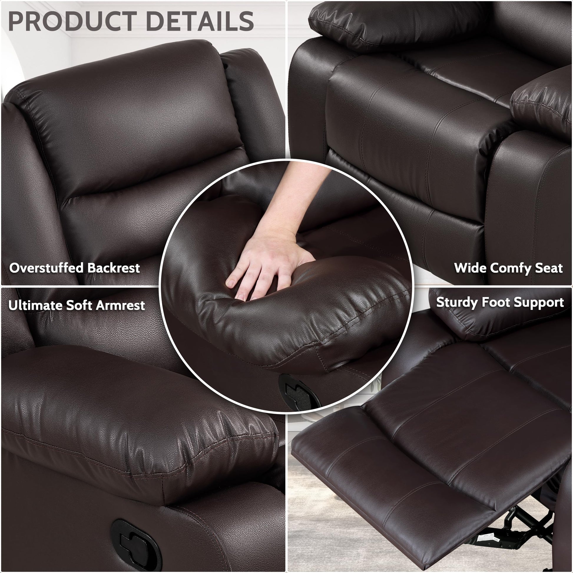- The soft and thick padded backrest and armrests provide you with stable support and ultimate comfort. Whether you're looking to create a cozy spot to watch TV or movies, read your favorite book, or just want to relax and unwind after a long day, our wide recliner chair delivers.