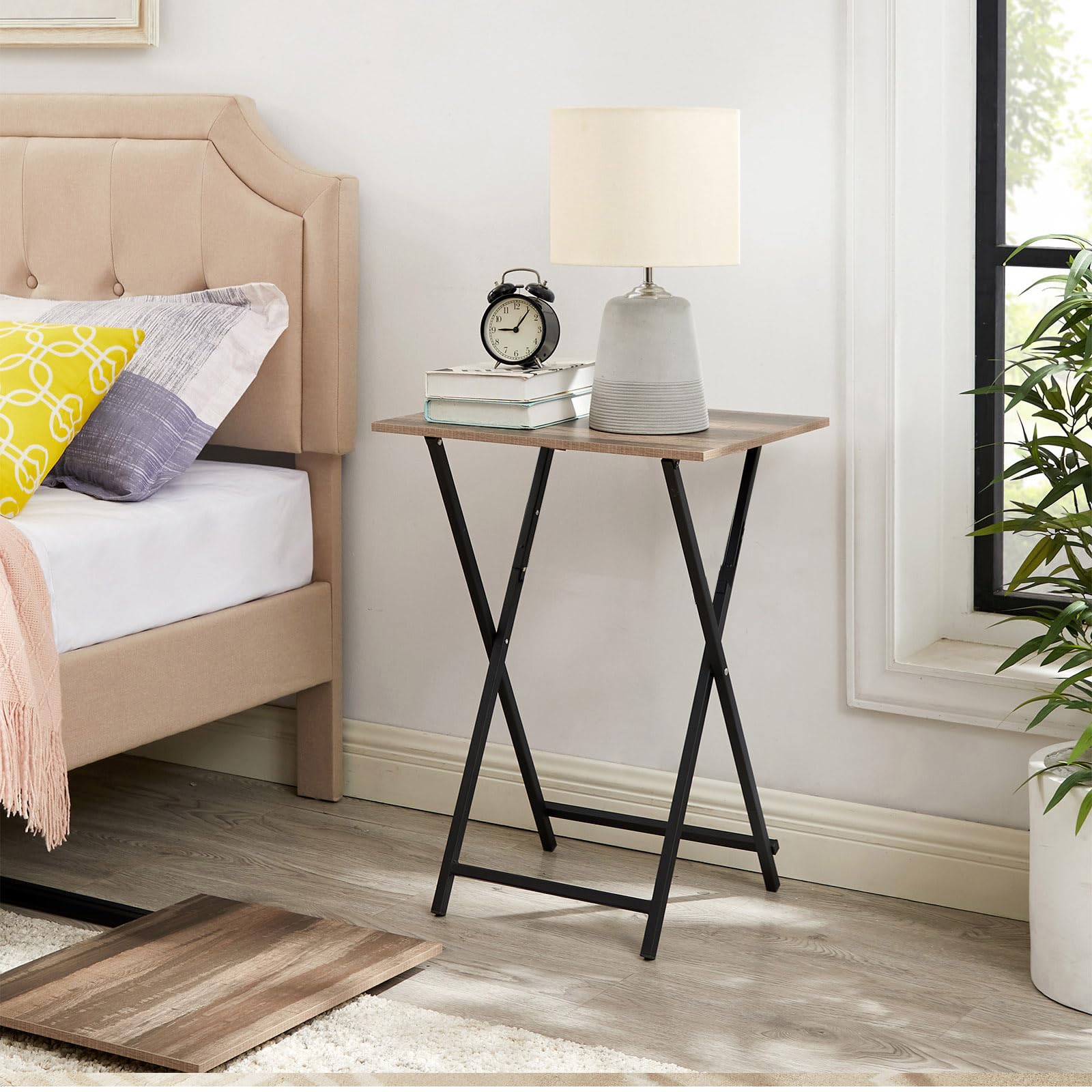 - Stable Structure: The TV tray is designed with high-quality particleboard material and an X-shaped base. The particleboard top is smooth and easy to clean, and the X-shaped base design provides effective support for the tray table, improving stability and safety