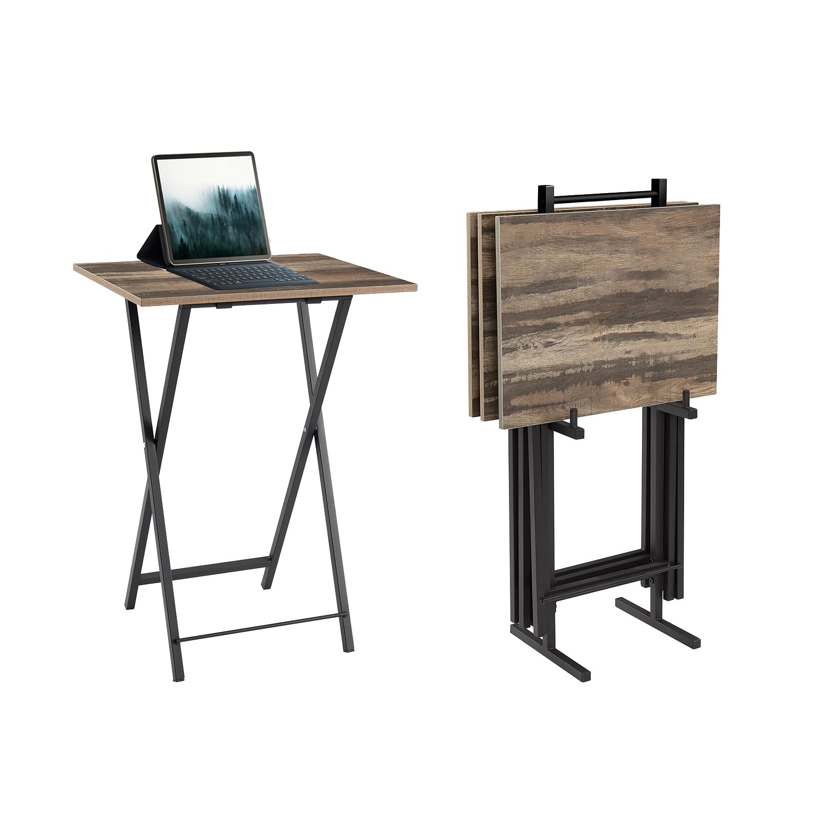 Folding TV Trays Set of 4 with Stand, Portable Dinner Tables, Snack Tray Table Set