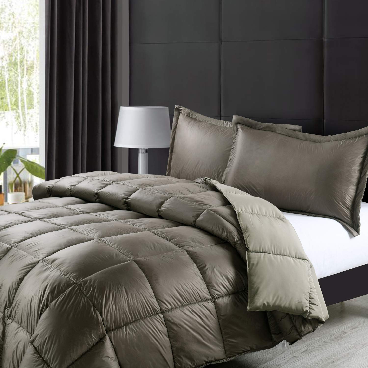 PUFF High Loft Down Indoor/Outdoor Water Resistant Comforter with Extra Strong Nylon Cover, Full/Queen, Taupe