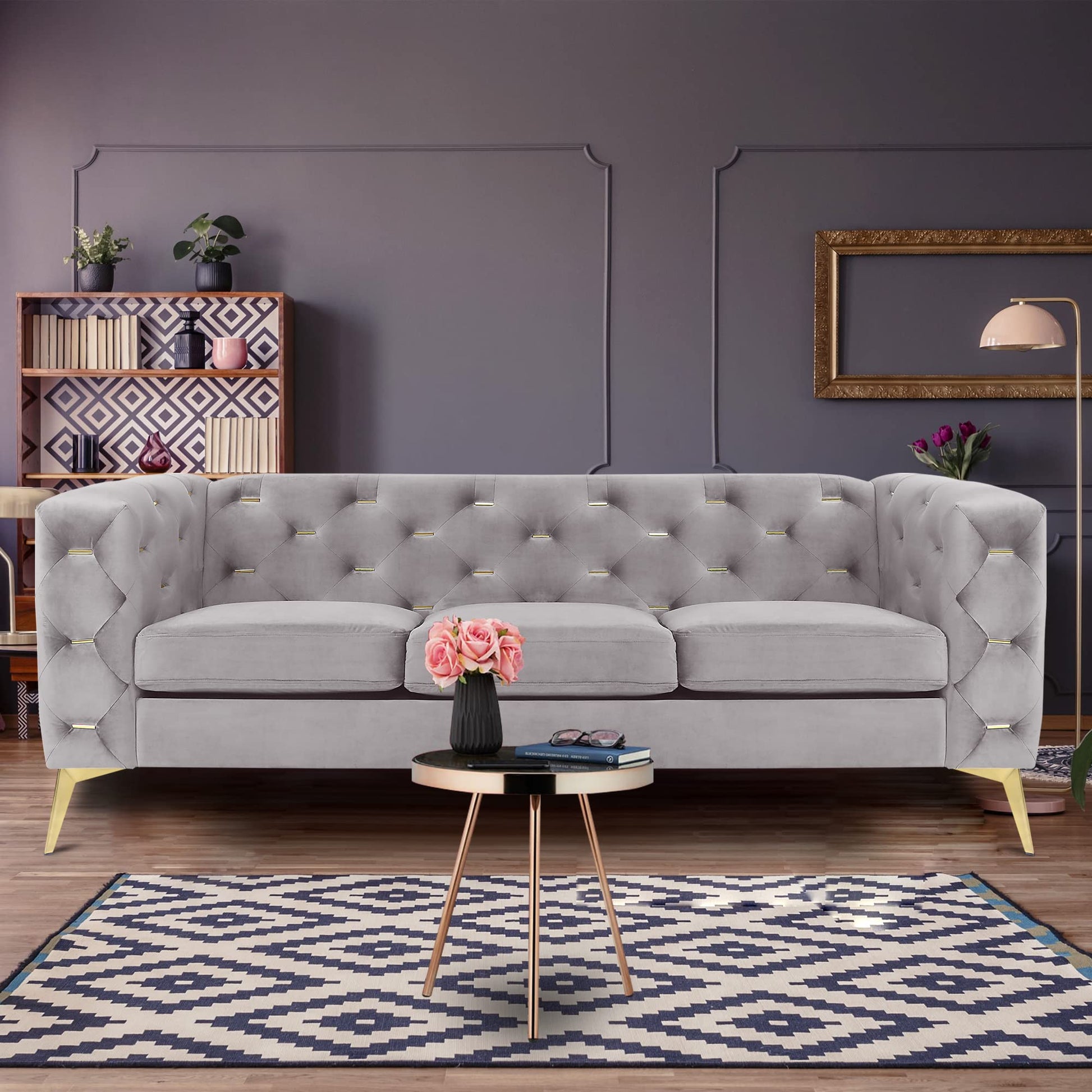 - Modern Design: This modern Chesterfield loveseat is designed with beautiful metal button tufted upholstery, square armrests, and metal legs, which add luxury and atmosphere to this couch, which is the best choice to decorate your home.