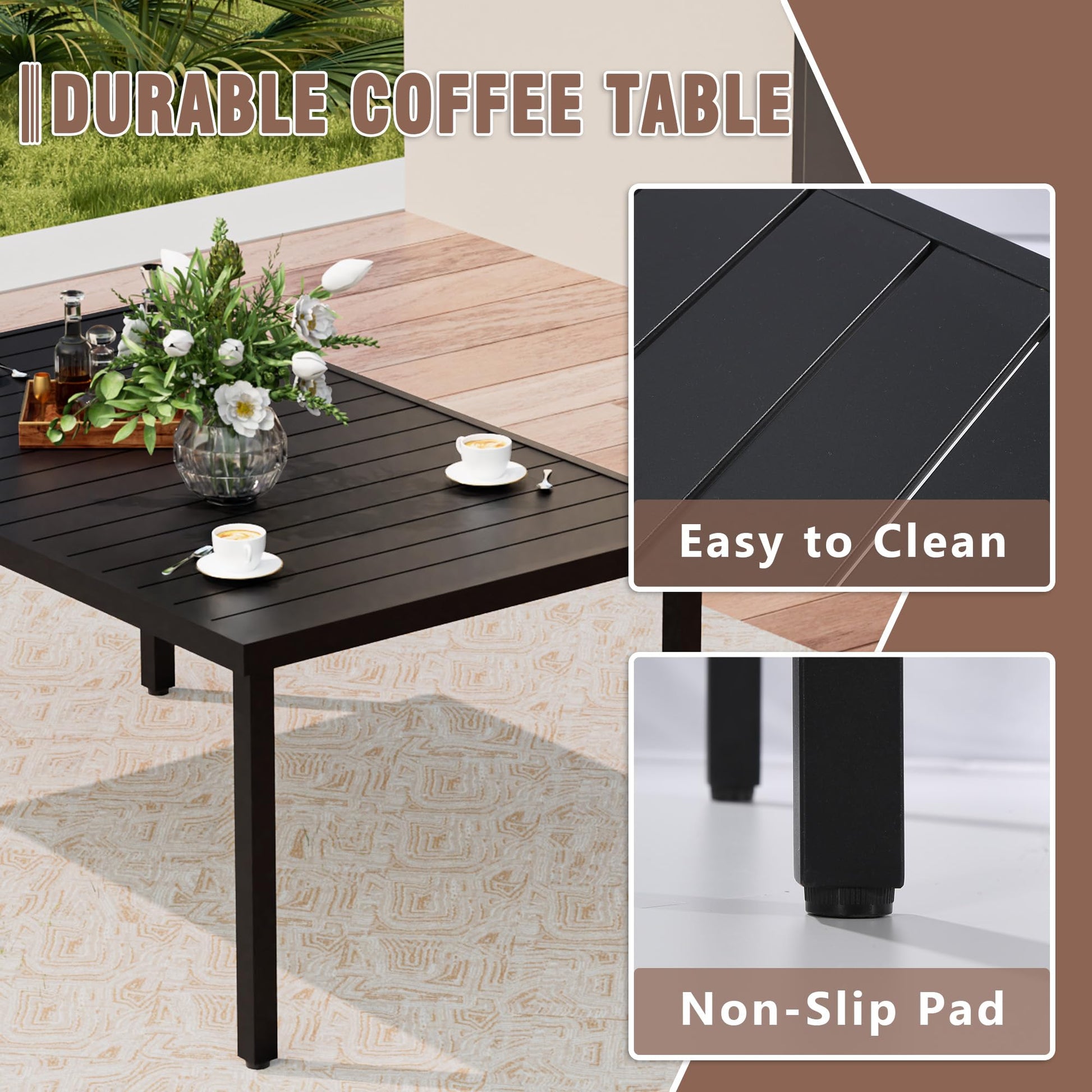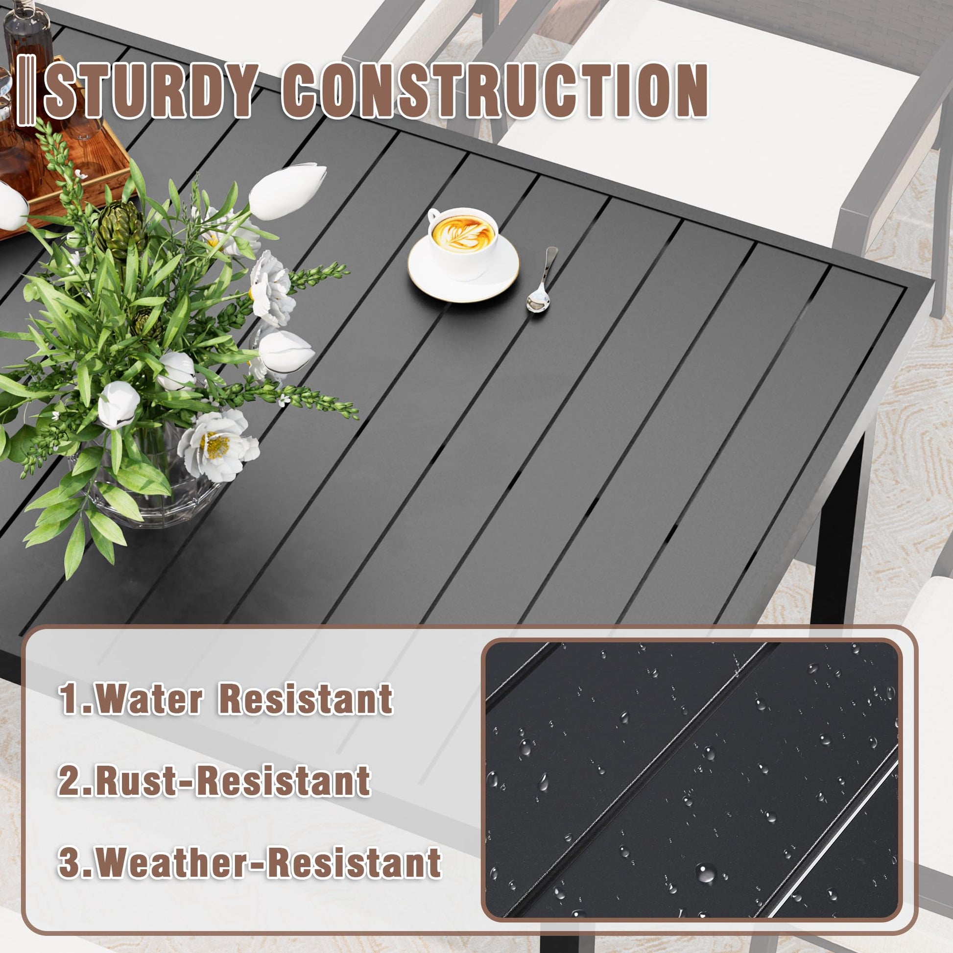 Qsoer 7-Piece Patio Dinning Set, All-Weather Use Outdoor Dinning Set for 6 with 1 Rectangular Table and 6 Metal Chairs for Deck, Porch, Poolside,Backyard