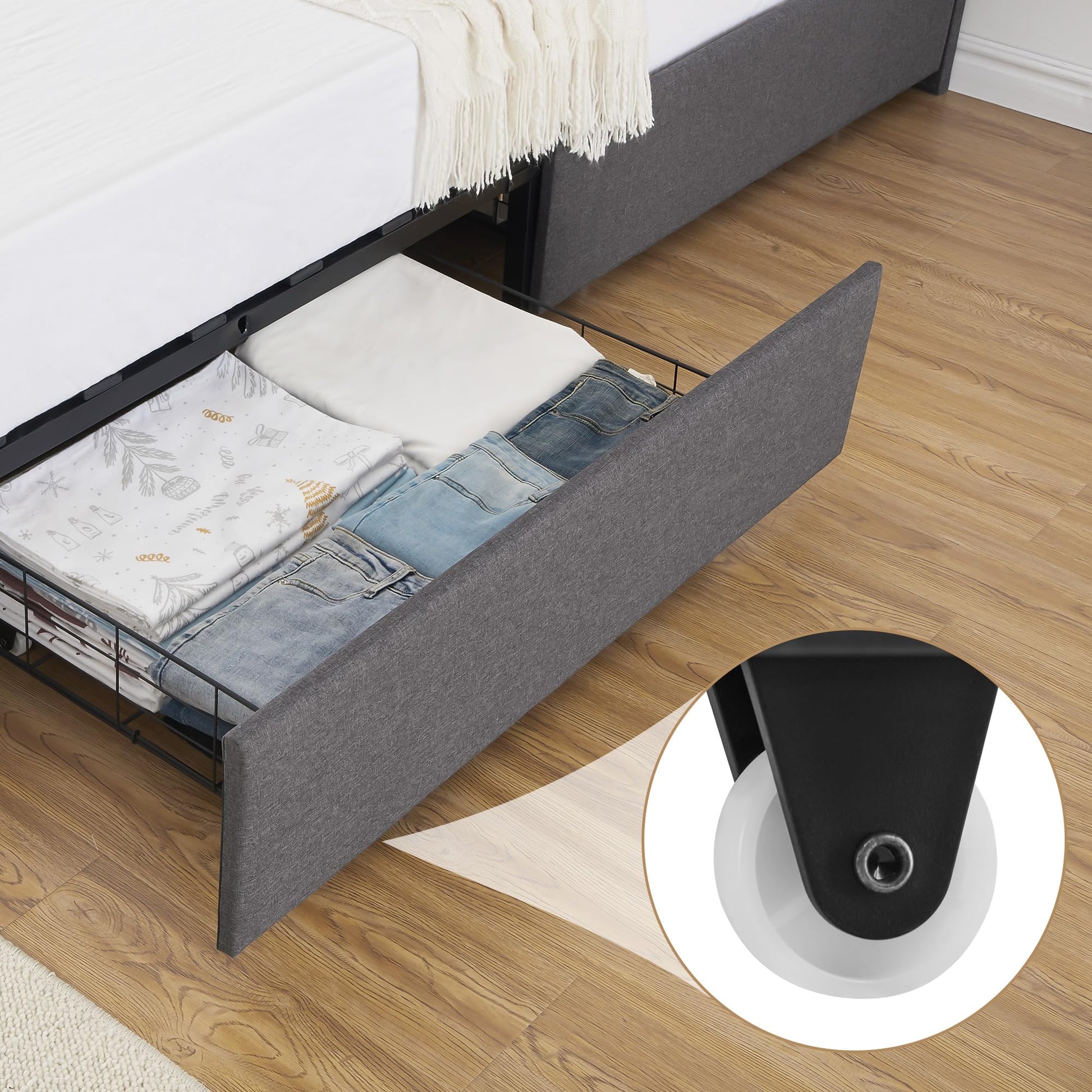 Queen Bed Frame Upholstered Bed Frame Platform with 4 Storage Drawers and Adjustable
