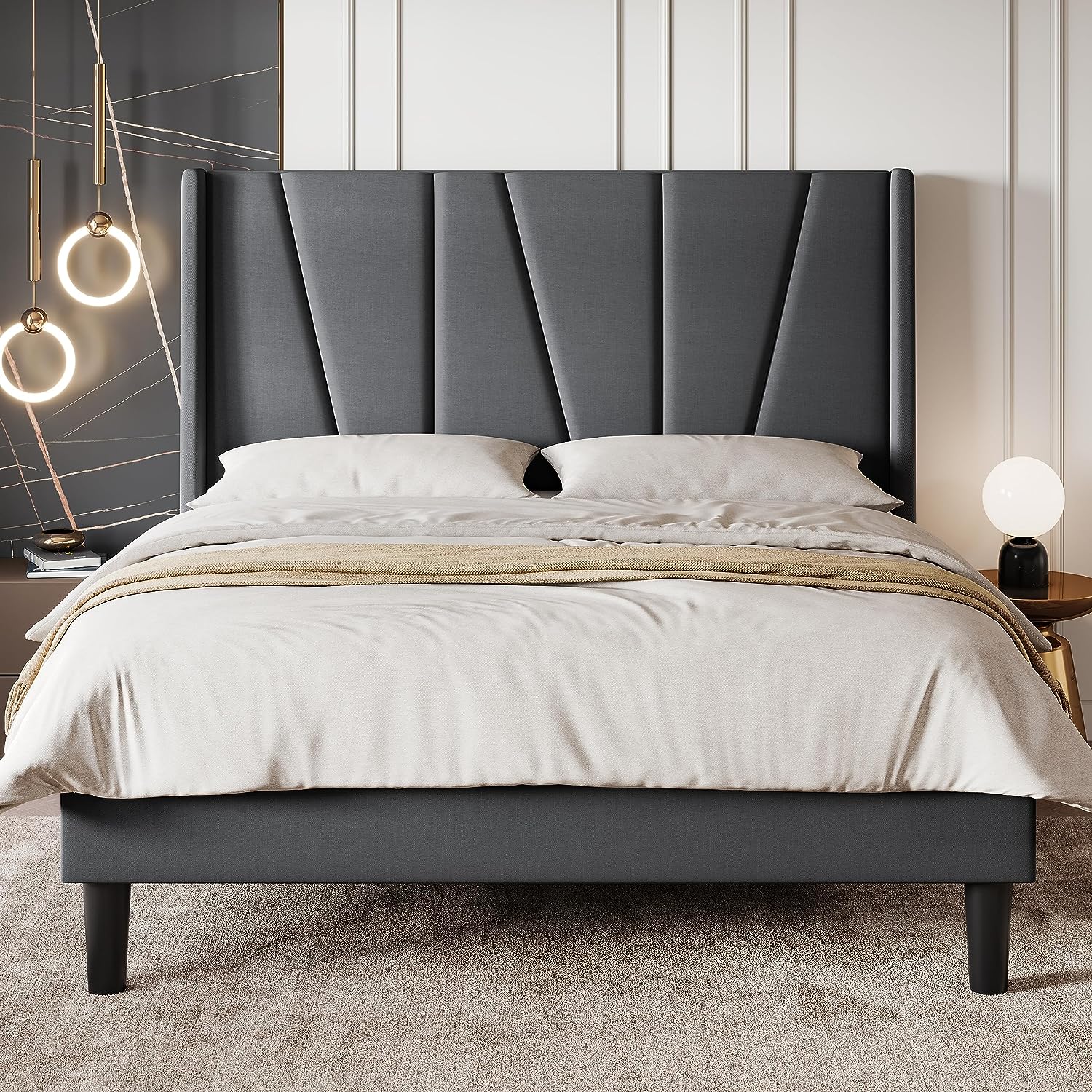 Queen Bed Frame – Upholstered Platform Bed with Wood Headboard