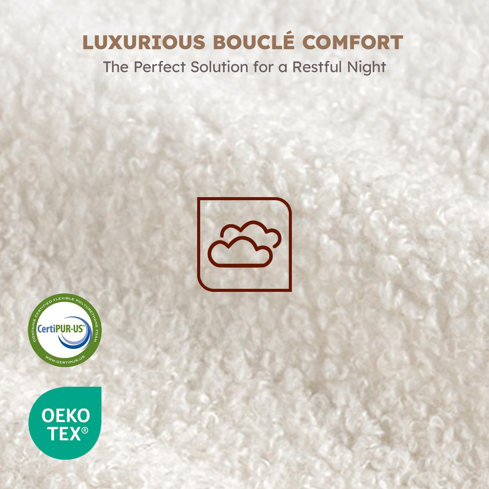 - Soft, textured boucle fabric upholstery for a premium look and feel