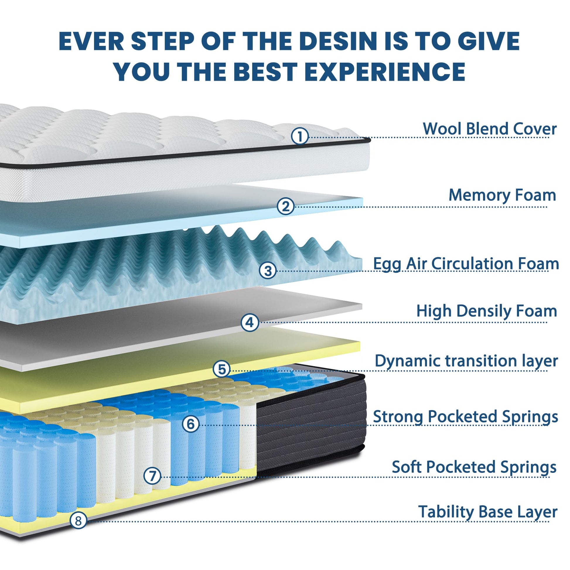 - Enjoy targeted support with individually pocketed springs that respond to your body's contours. Each spring acts independently, providing customized support and reducing motion transfer for undisturbed sleep.