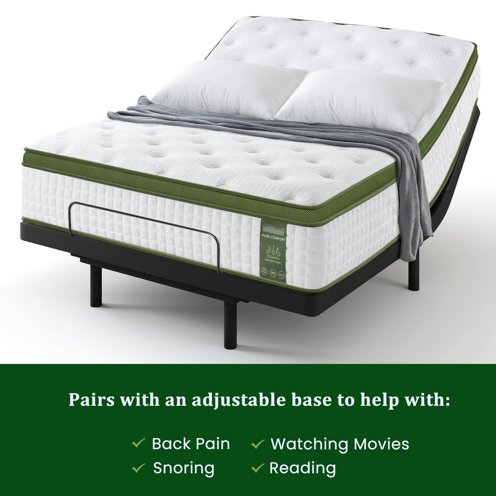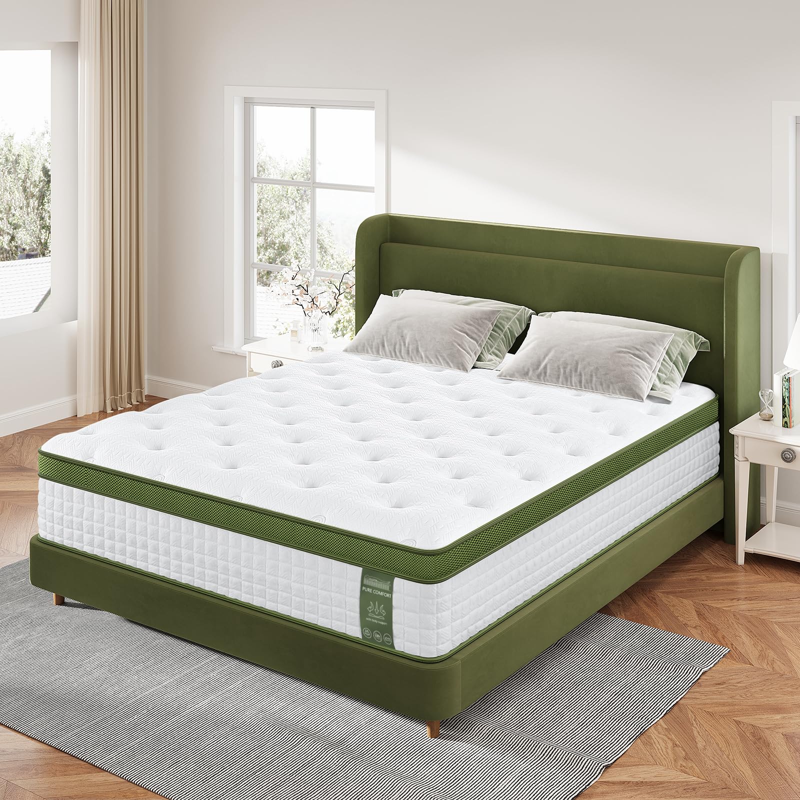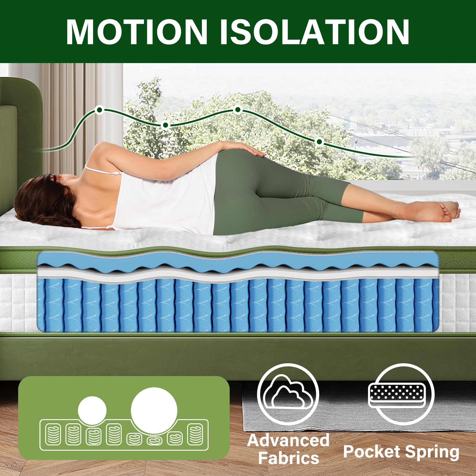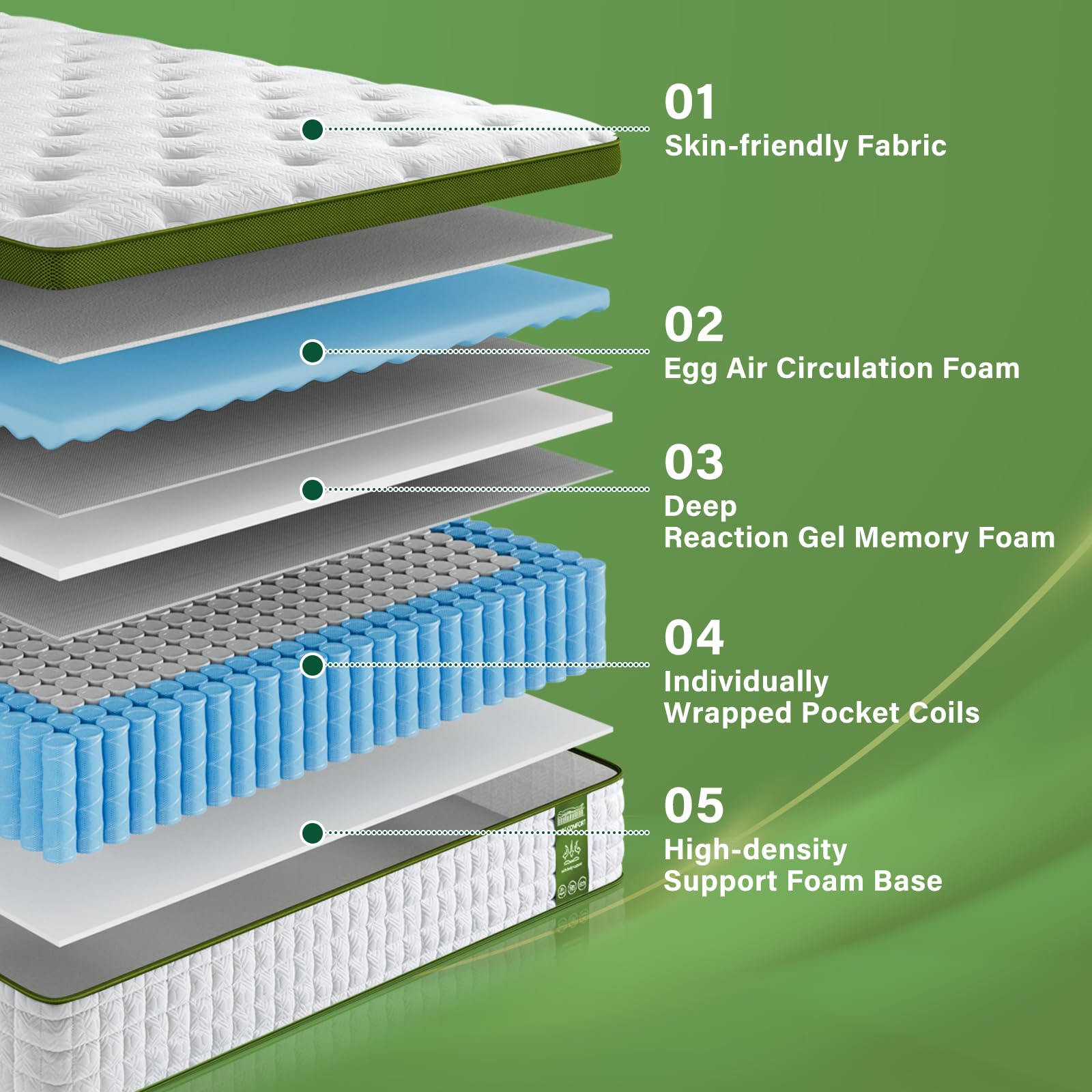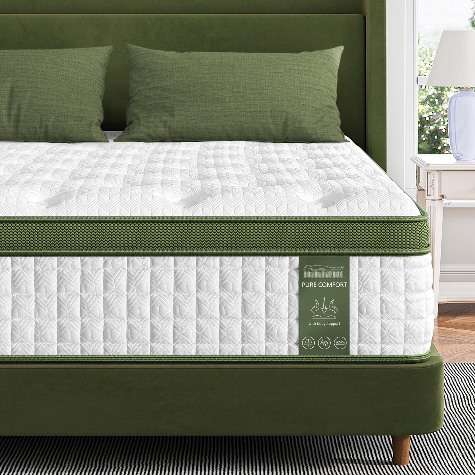 - Each spring is encased independently to form individual working zones. This means that one partner's movements won't disturb the other, ensuring a quiet night undisturbed by noise or vibration, experiencing unmatched pressure relief. High-density foam and reinforced coil are added to the queen and king bed mattresses to enhance the edge support, avoid the feeling of falling, and provide better protection for sleepers.