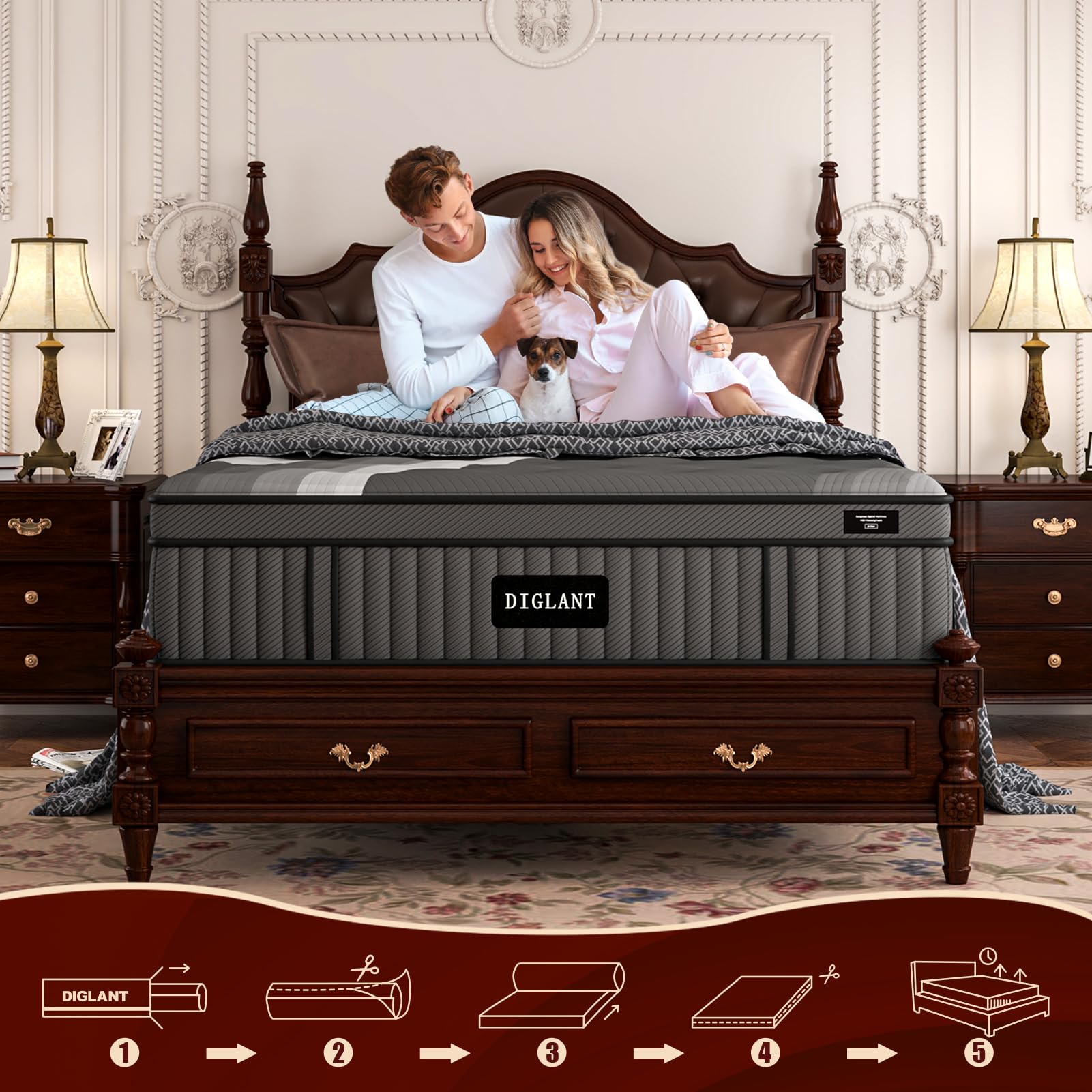 Queen Mattress DIGLANT 14 Inch Memory Foam Hybrid Mattress