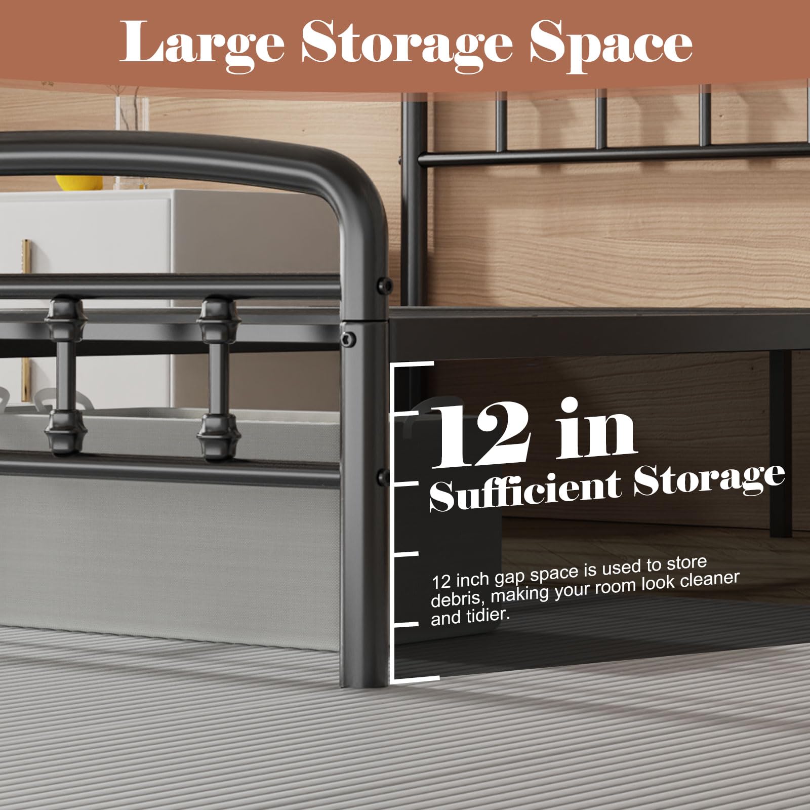 - Generous Under-Bed Storage: 12 inches of clearance provides over 108 sq ft of storage space—equivalent to an entire closet—perfect for bins, luggage, and seasonal items