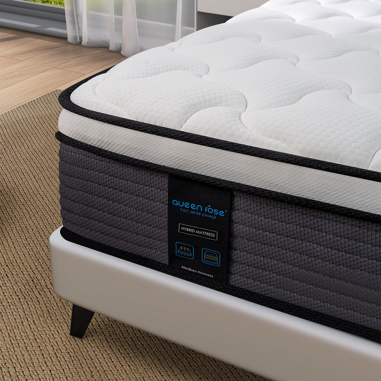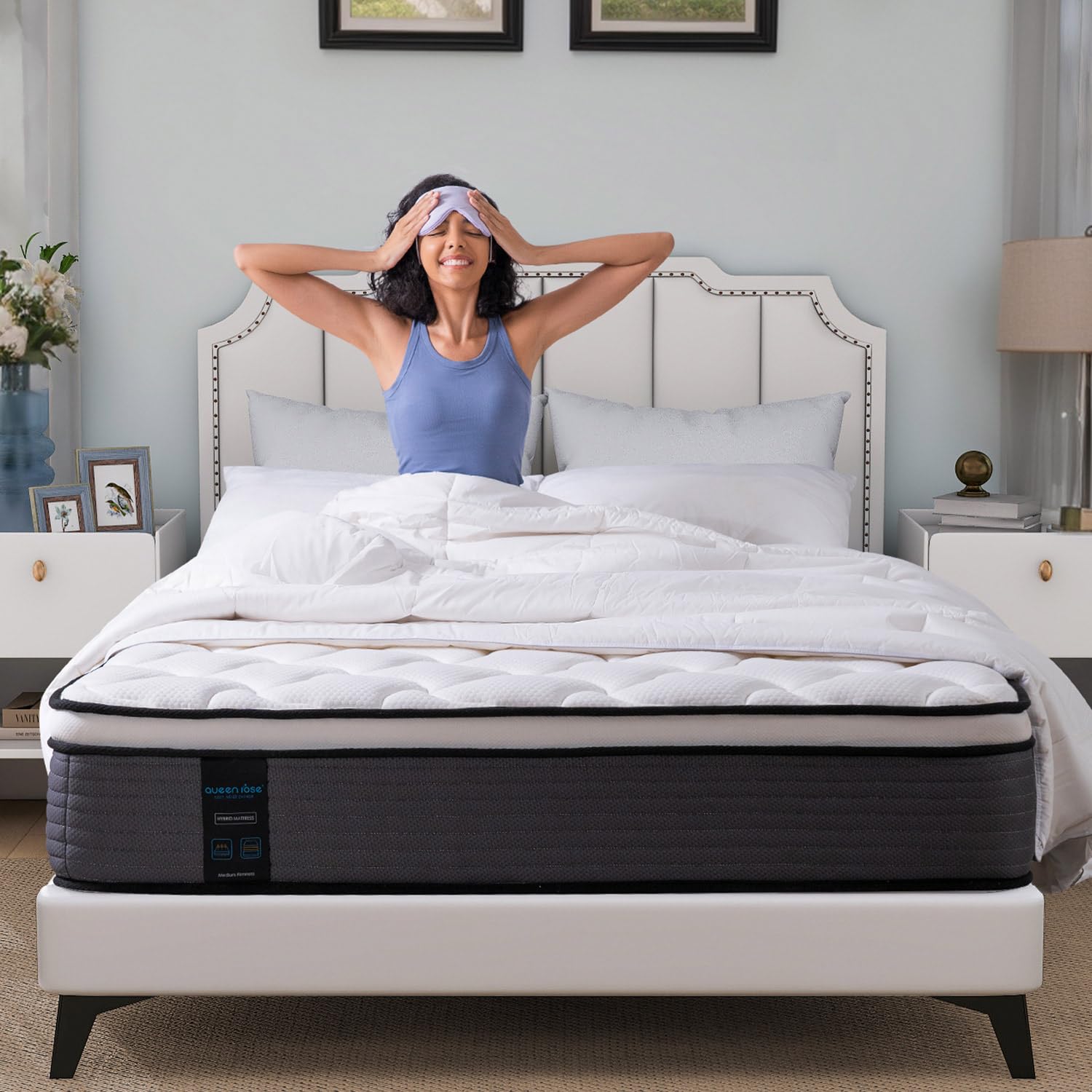 QUEEN ROSE Queen Size Mattress, 12 Inch Pillow Top Hybrid Mattress