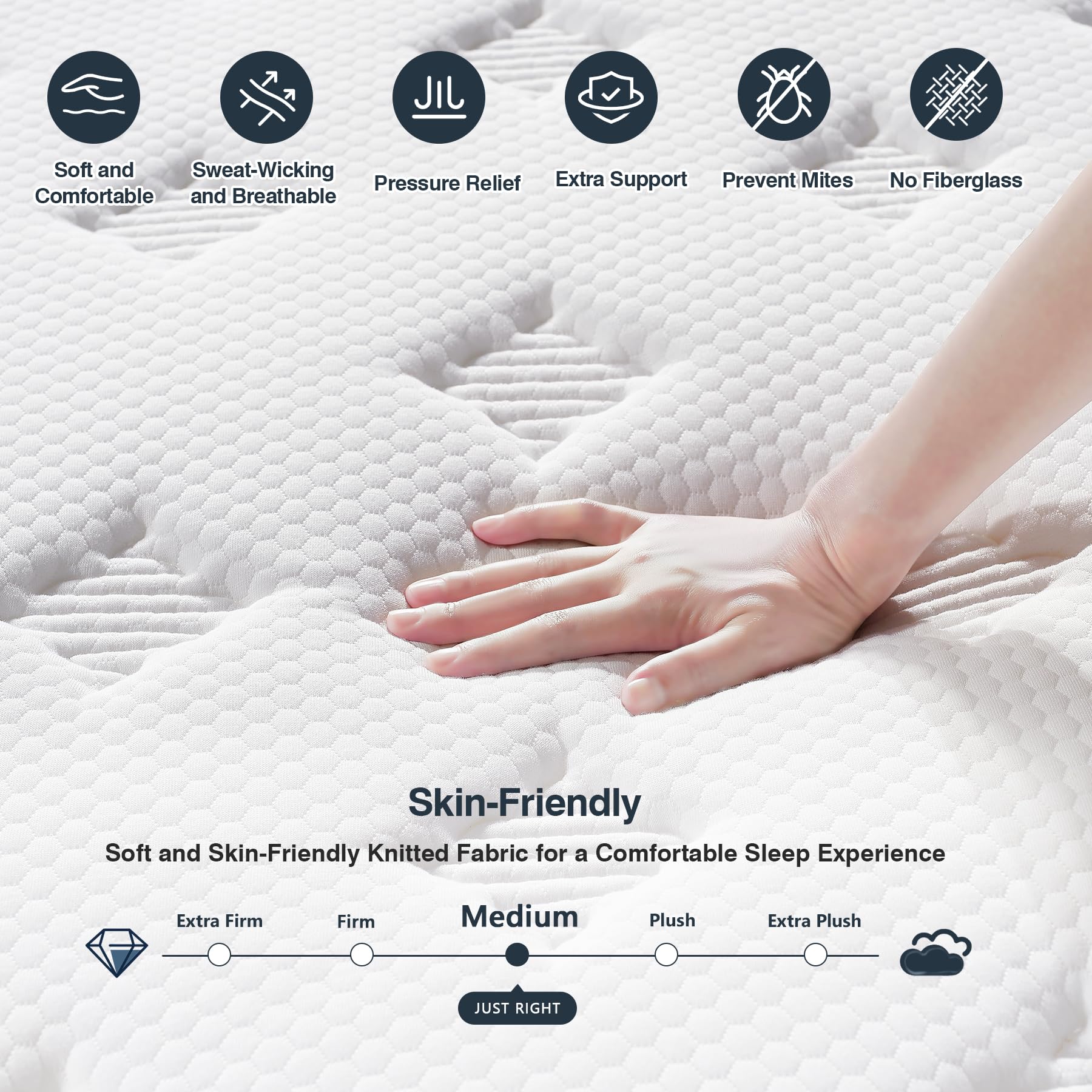 - SOFT TO THE TOUCH AND SUPERIOR QUALITY: The mattress queen size is designed with porous breathable fabric, which is more breathable and comfortable than traditional mattresses, and the top layer is made of soft high-end fabric, which feels like clouds, so that you can wake up refreshed.