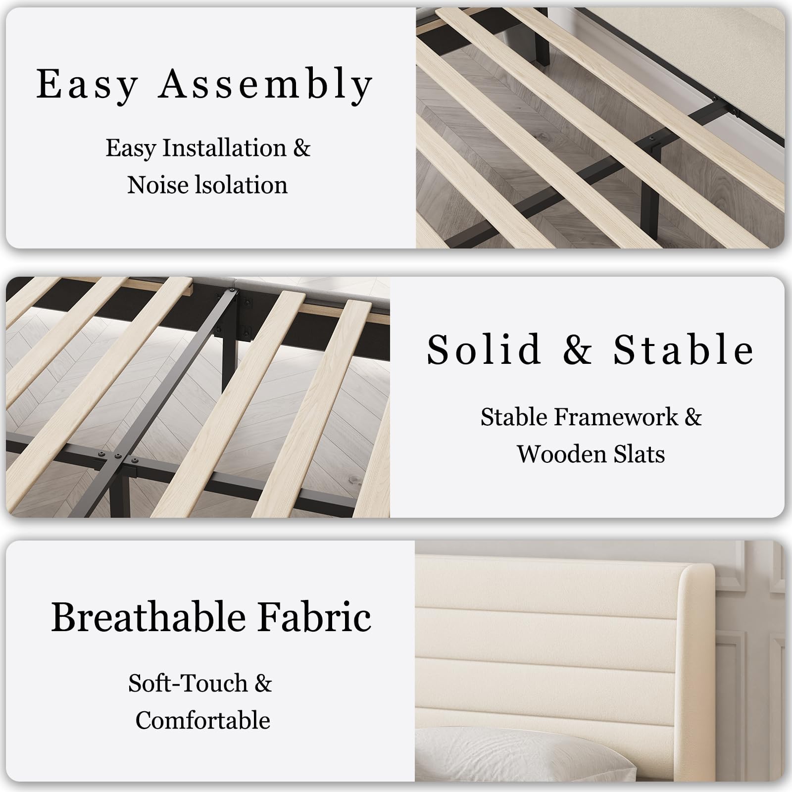 | Support System | Strong wood slat foundation |