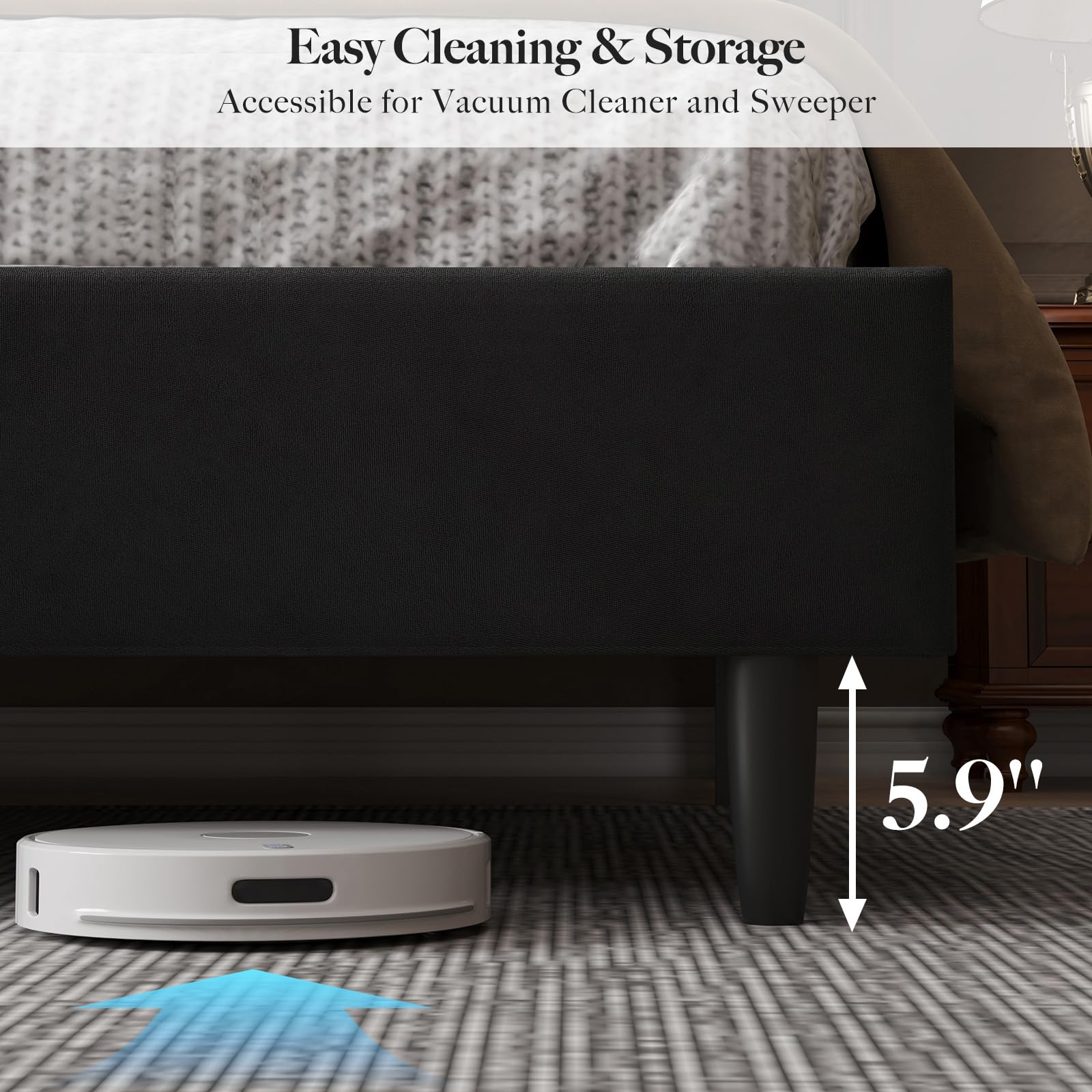 Queen Bed Frame with Upholstered Velvet Headboard - Black
