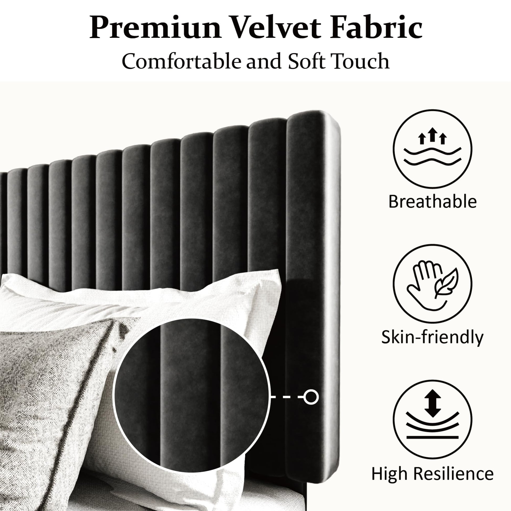 Elevate your bedroom with this luxurious queen-size platform bed frame featuring a plush velvet upholstered headboard. Designed for both style and durability, this bed frame combines premium materials with modern construction to create a sophisticated centerpiece for your sleeping space.