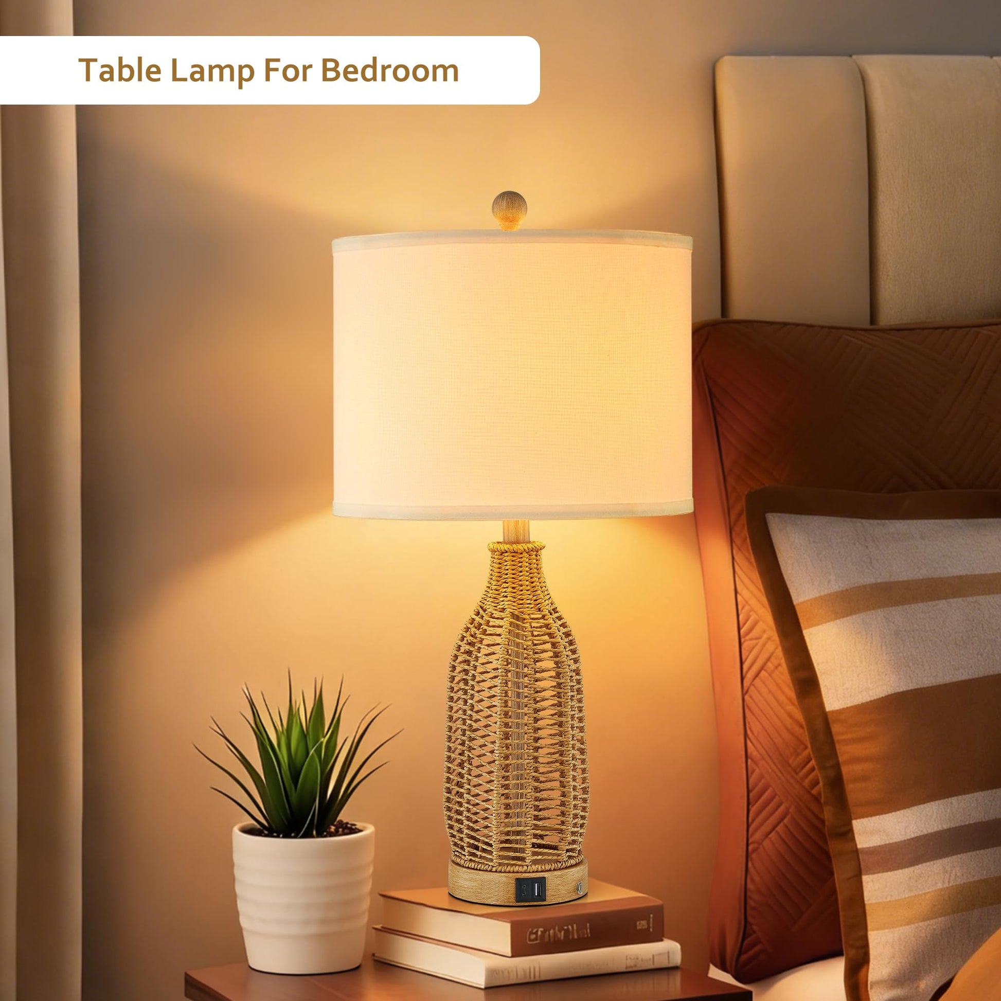 These versatile table lamps are ideal for bedside nightstands, living room end tables, home offices, and guest rooms. The natural rattan texture adds warmth and character while the built-in USB ports eliminate the need for bulky charging adapters on your nightstand.