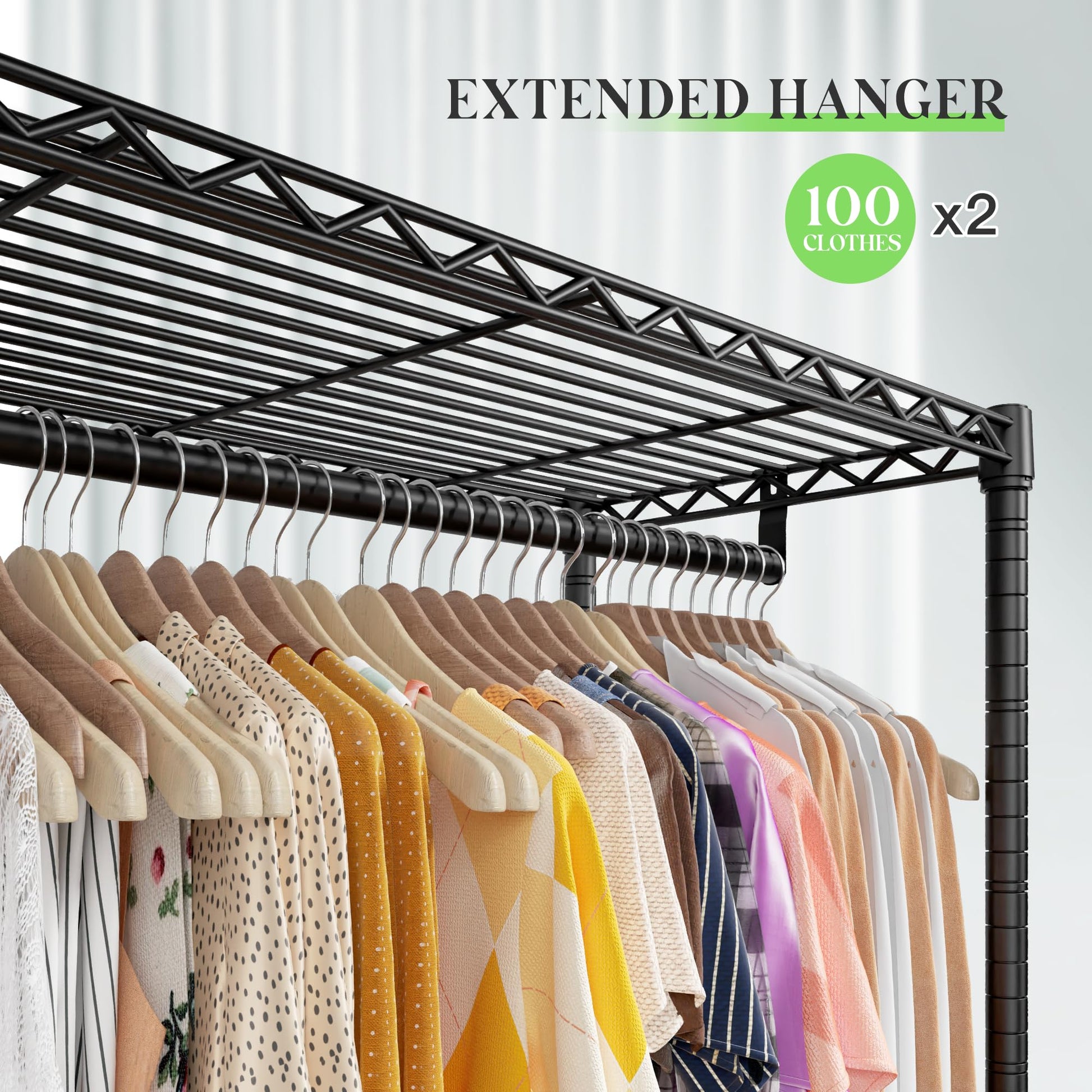 - Extra Large Size & Heightening DesignDimention: 74.8"Wx18"Dx77" H. You can put at least 200+ summer clothes and many other things on this heavy-duty clothes rack, and the special 77-inch heightened design makes it completely possible to keep your clothes vertical and wrinkle-free, always neat, like new.