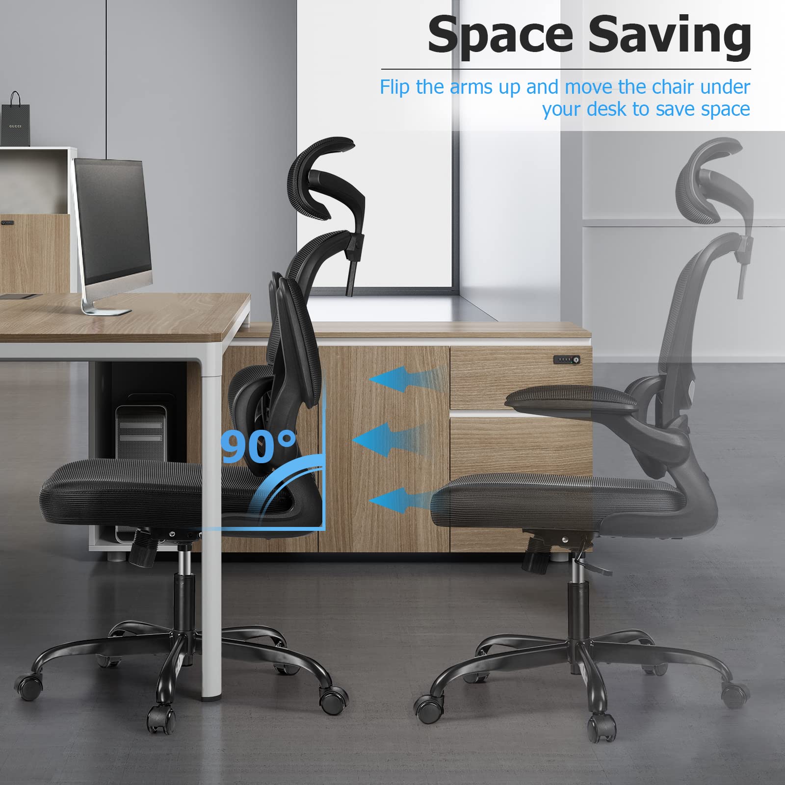 - Space Saving Flip-up armrests design allow you to fold the padded arms up to 90°, you can push the home office chair under the desk to save space smoothly. Suitable for office, meeting room, gaming room, home, etc.