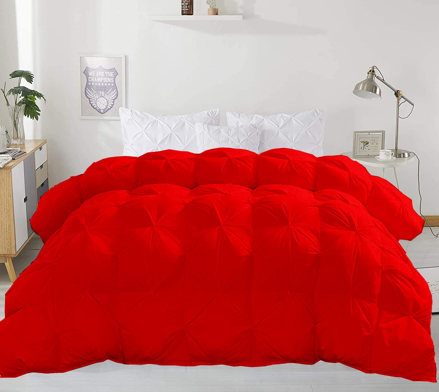 - Red Solid Premium Quality 1000-TC Pinch Pleated Down Comforter- Eastern King Size 118 x 110 Inches 1 Piece All-Season Duvet Insert, 500 GSM With Corner Tabs 100% Egyptian Cotton- ( Red Solid )
