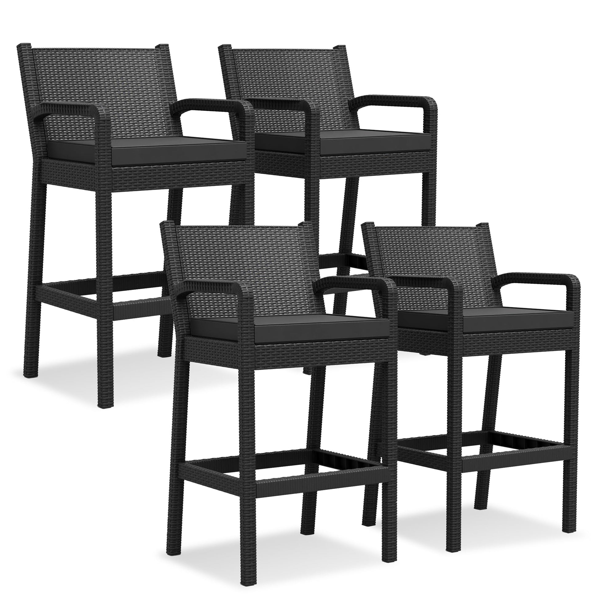 Outdoor Bar Stools Set of 4, 30" Patio Barstools Furniture Chairs with Cushions