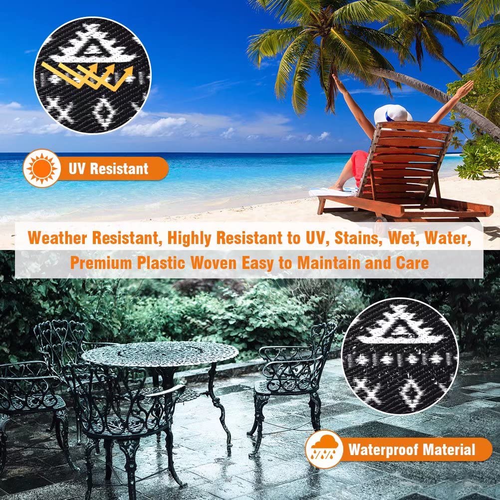 - Our outdoor/indoor rug is made of 100% polypropylene with tightly woven plastic straw, soft and comfortable. Reversible and eco-friendly mats, double-sided design for upgrading your bland space to add a different colors. Flip over the rugs, choose favorite side to match your furniture. Enjoy season and relax in your own area