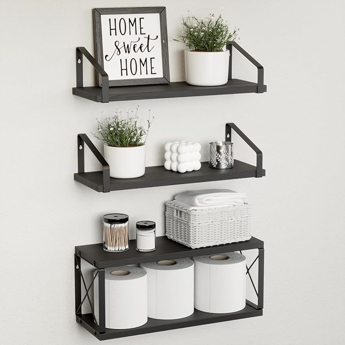 - Your Shelf Your Style - These flexible floating shelf brackets can be installed on the top of the board or below. Arrange freely the layout to meet your personalized needs and 3-set storage racks provide various combinations for you to make full use of wall storage in the bedroom, living room, coffee bar, and office.