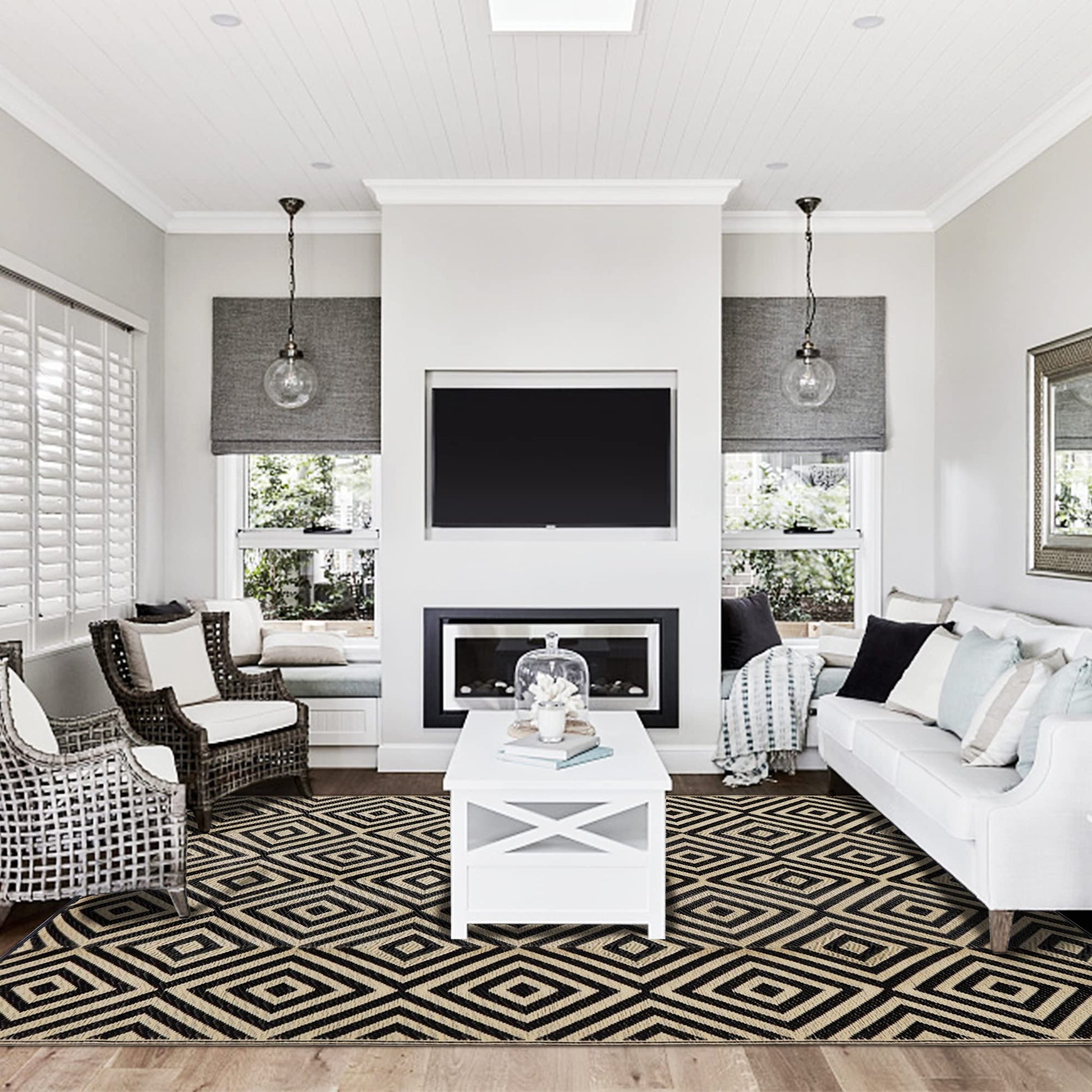 - PREMIUM QUALITY -- This outdoor rugs for patio is made of high-quality polypropylene, along with heat treated edge, soft and hard wearing, will not hurt grass or scratch your deck, can withstand outdoor weather all year round, low-maintenance.