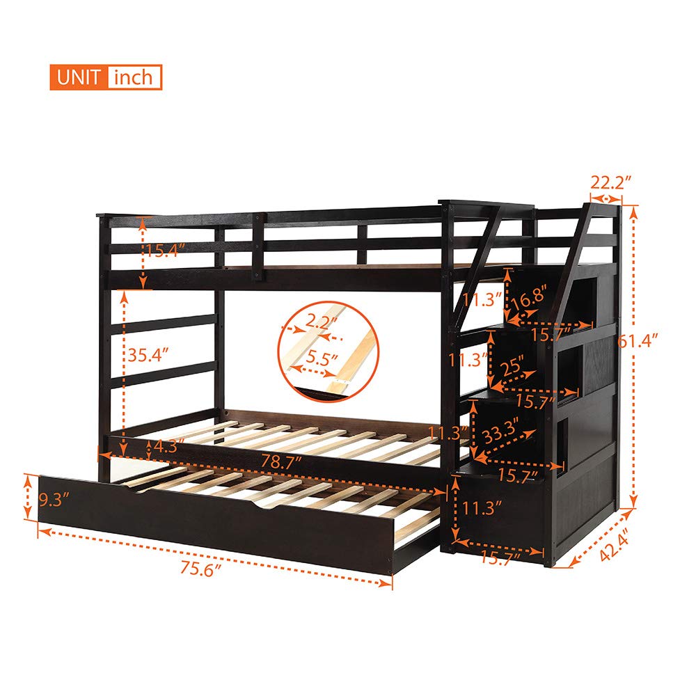 - HIDEAWAY TRUNDLE: The twin bunk beds with a twin hideaway trundle bed is easy to create the extra sleep space when needed. Ideal for accommodating guests or for the family with several kids.