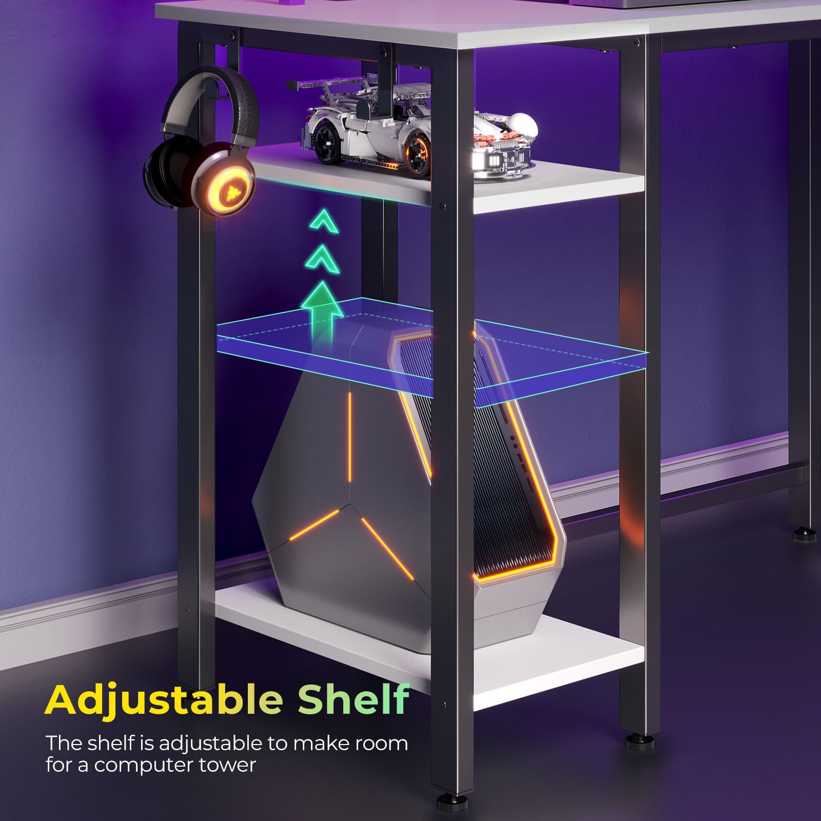 - Cool RGB Led Light Strips Kit - The L shaped desk is equipped with LED light strips, which can provide 20 colors and 5 dynamic modes.When entertaining, dim the lights and choose your favorite colors to fully immerse yourself in the game. When working, match your favorite color to make you work more focused.It features memory function which keep the led strip lights staying on last mode when turned on. The smart led lights strips are in multiple control modes via 44 keys remote and controller box.