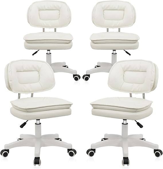 Small Rolling Stool with Backrest - Adjustable Height Vanity Chair