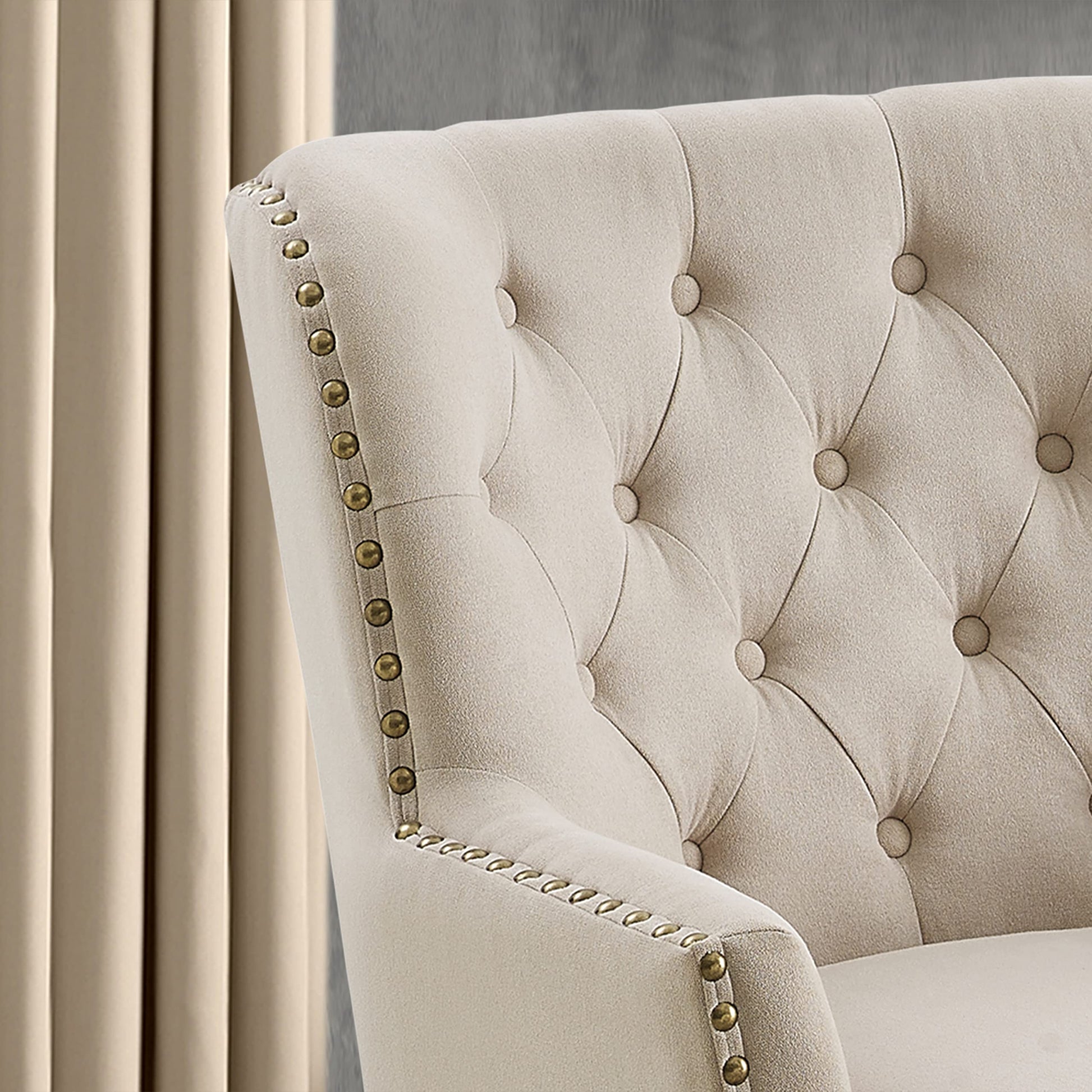 - TIMELESS ELEGANCE: Inspired by the classic Victorian furniture of the 20th century, the Sausalito Accent Armchair captures the essence of traditional button tufting and graceful curves that defined the era. Our design team has seamlessly brought this style into the modern age by incorporating contemporary touches like nail head trim along the edges to enhance its silhouette and thicker padding for added comfort.
