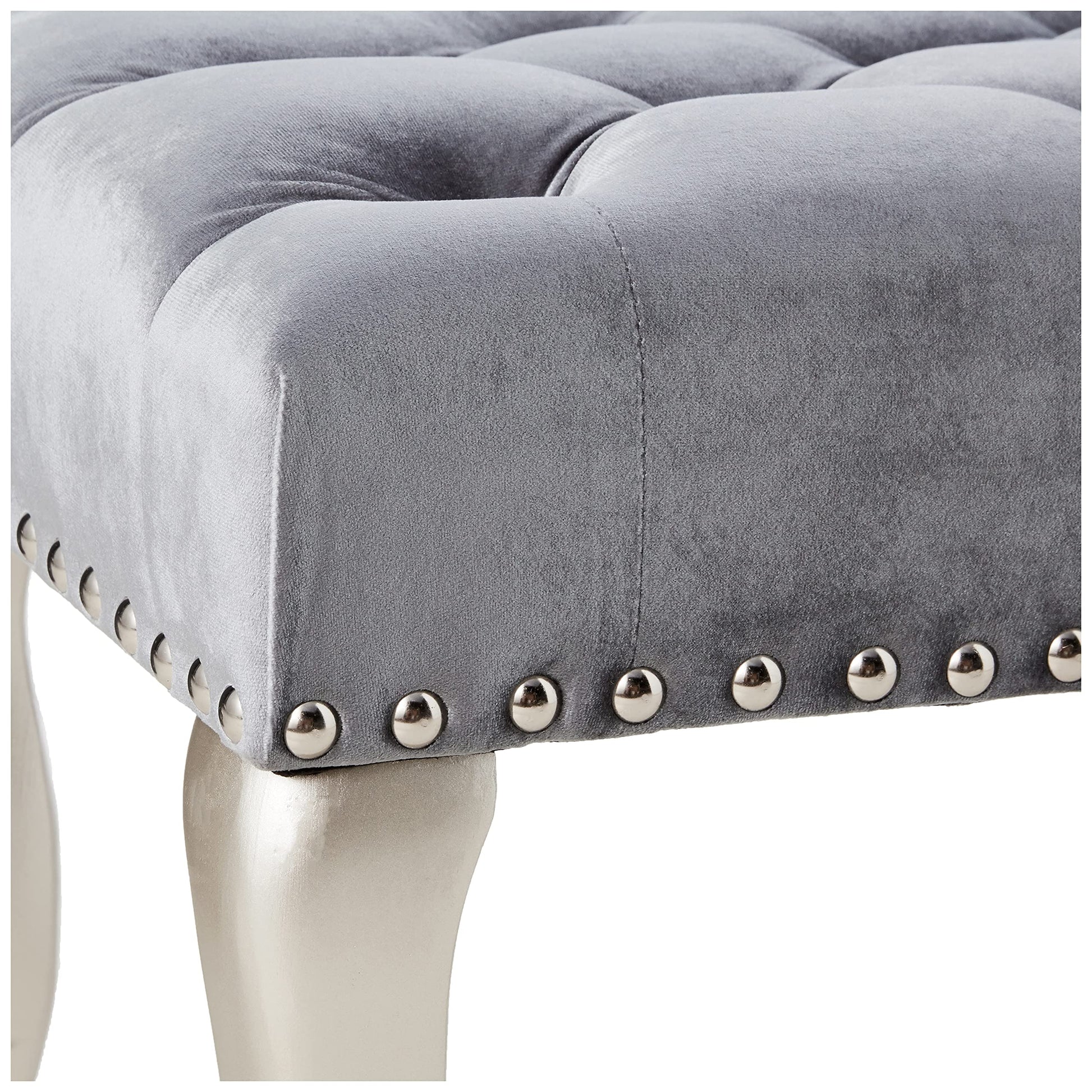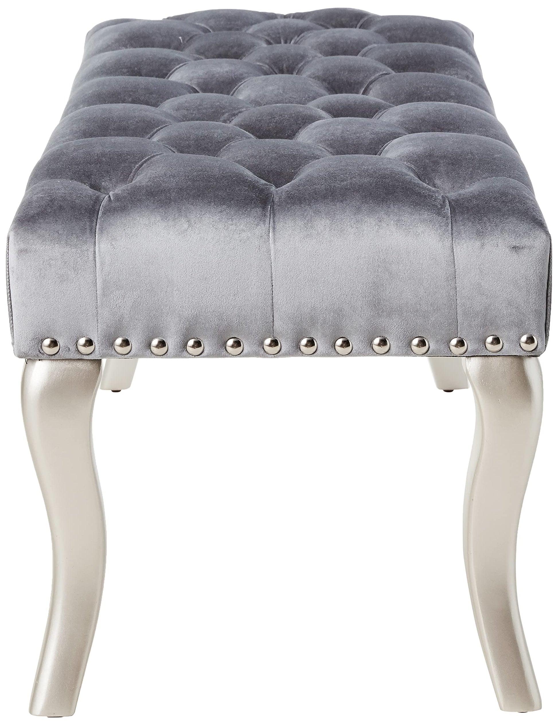 Decor Maxem Tufted Fabric Upholstered Seat with Nailhead Trim Bench, Gray