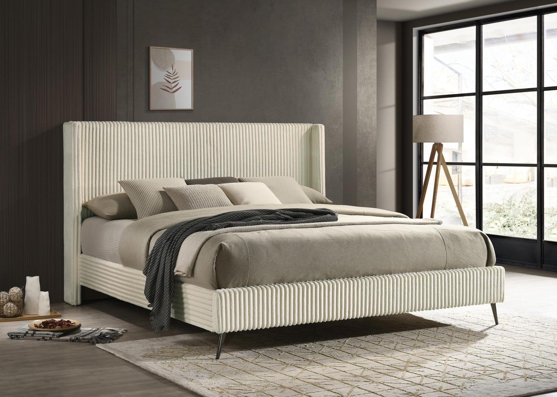 Mavela Wide Wale Corduroy Upholstery Panel King Bed, Cream