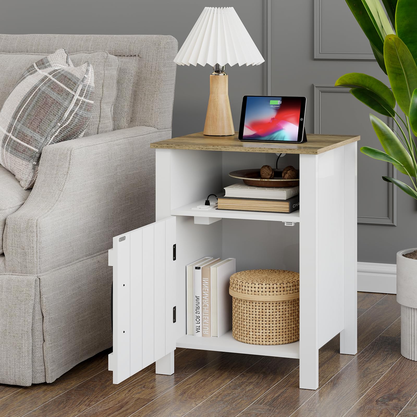 White Nightstand,Large End Table with Charging Station, 15.7''Lx17.7''Wx23.6‘’H