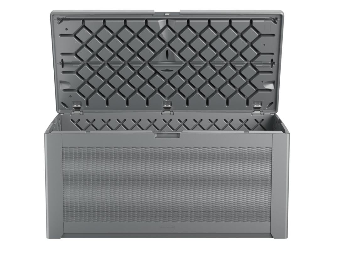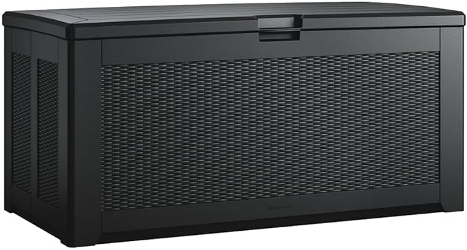 - UNIVERSAL DESIGN: Clean lines and neutral tones blend deck box into any yard or patio. Top of deck box doubles as extra seating or an end table for holding drinks or snacks.