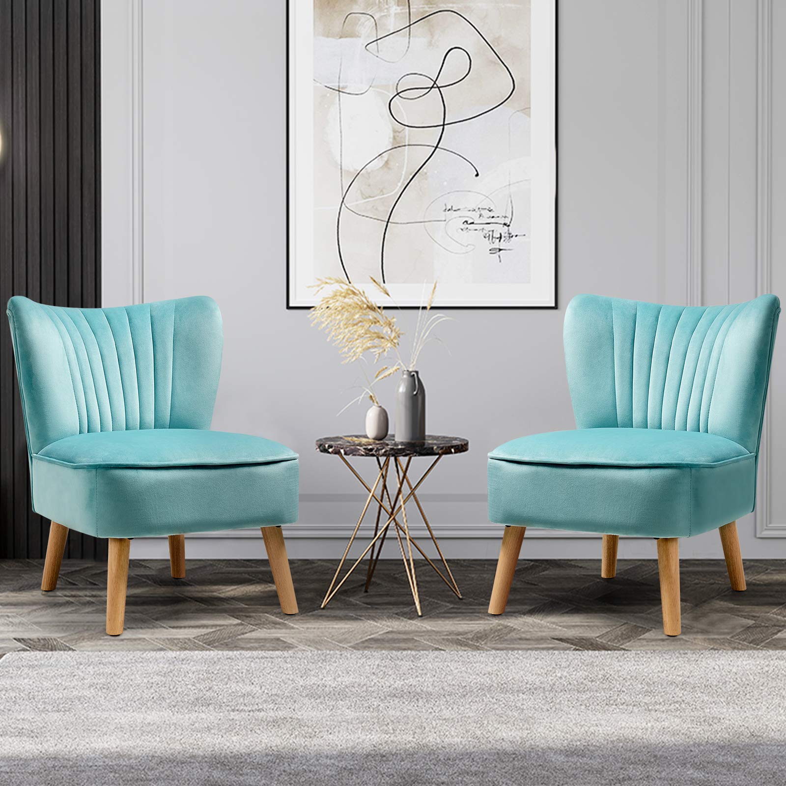 Armless Accent Chair, Velvet Modern Chair with Rubber Wood Legs and Thick Sponge Seat
