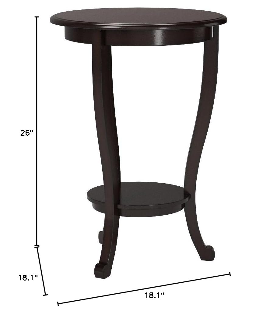- Assembly required, this corner table measures 18.1-inch wide by 18.1-inch deep by 26-inch tall