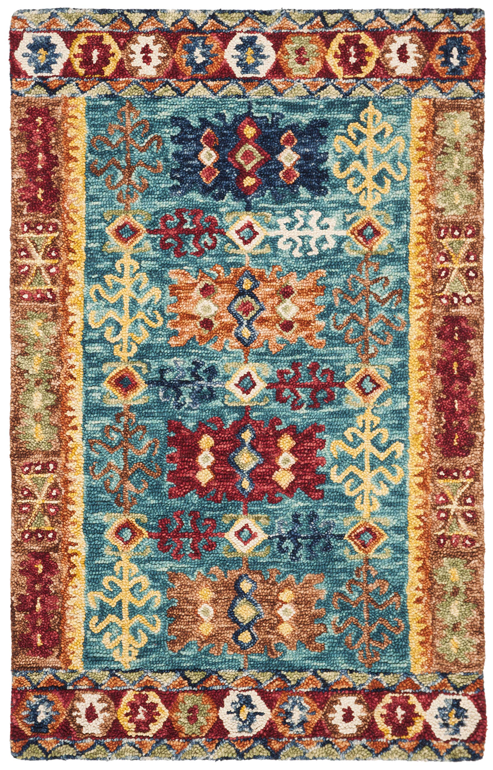 Aspen Collection 3' x 5' Blue / Red APN503A Handmade Boho Wool Area Rug