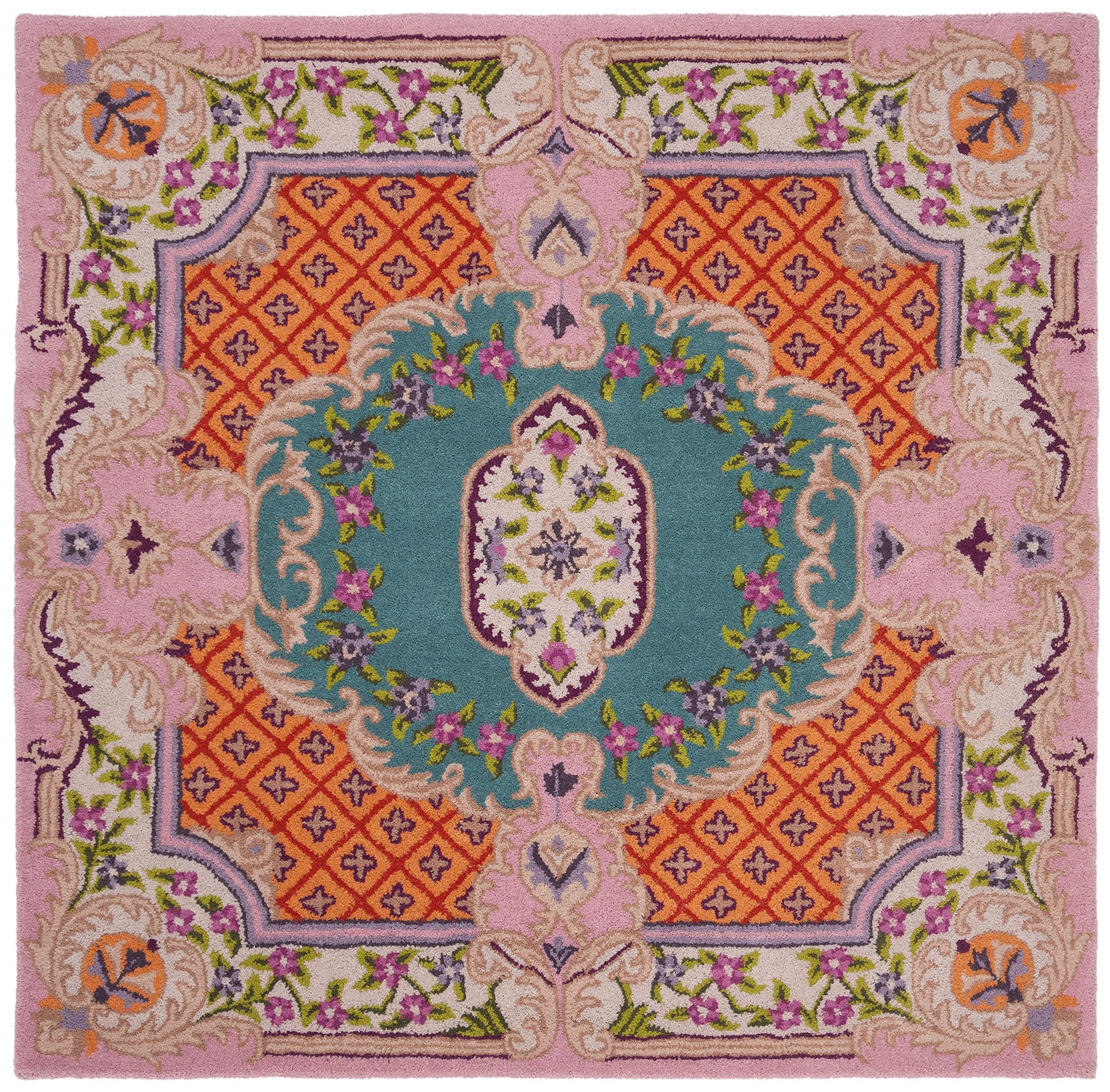 Bellagio Collection 5' Square Blue/Pink BLG535M Handmade Medallion Premium Wool