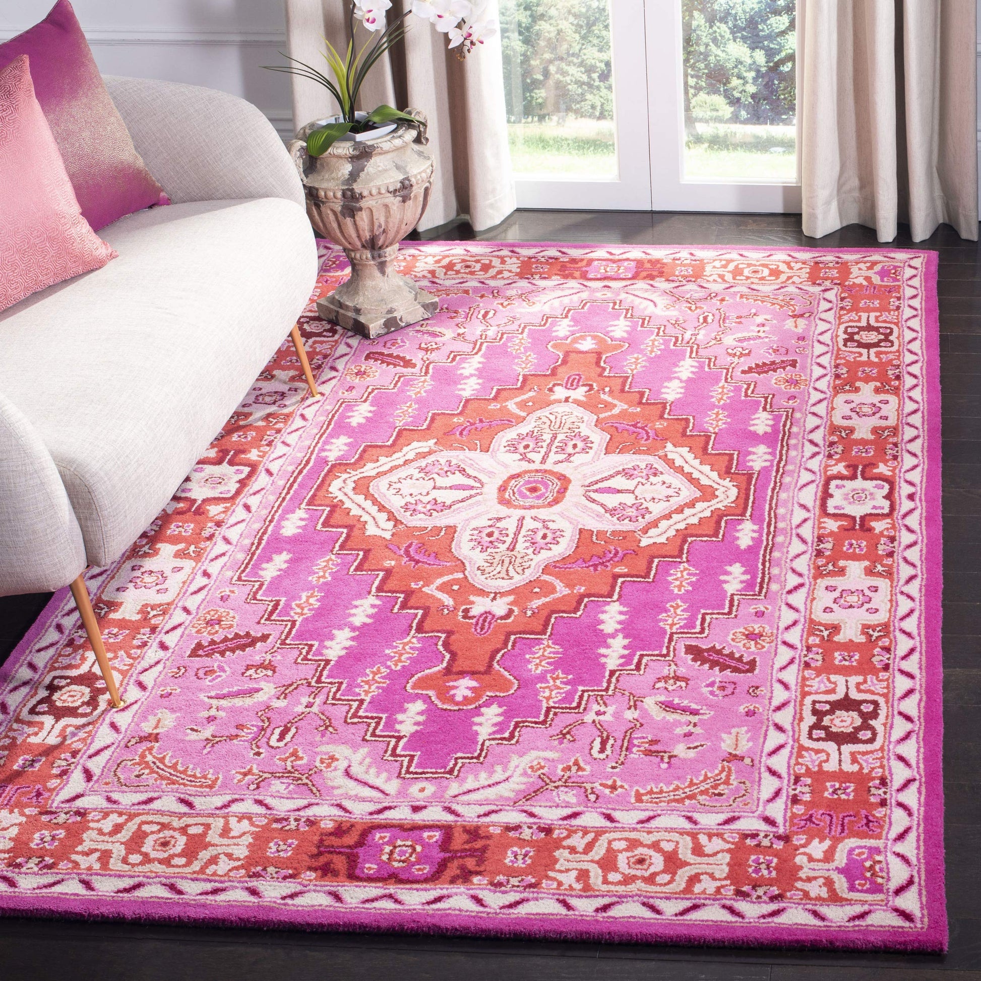 Bellagio Collection Area Rug - 5' x 8', Red & Pink, Handmade Medallion Wool, Ideal