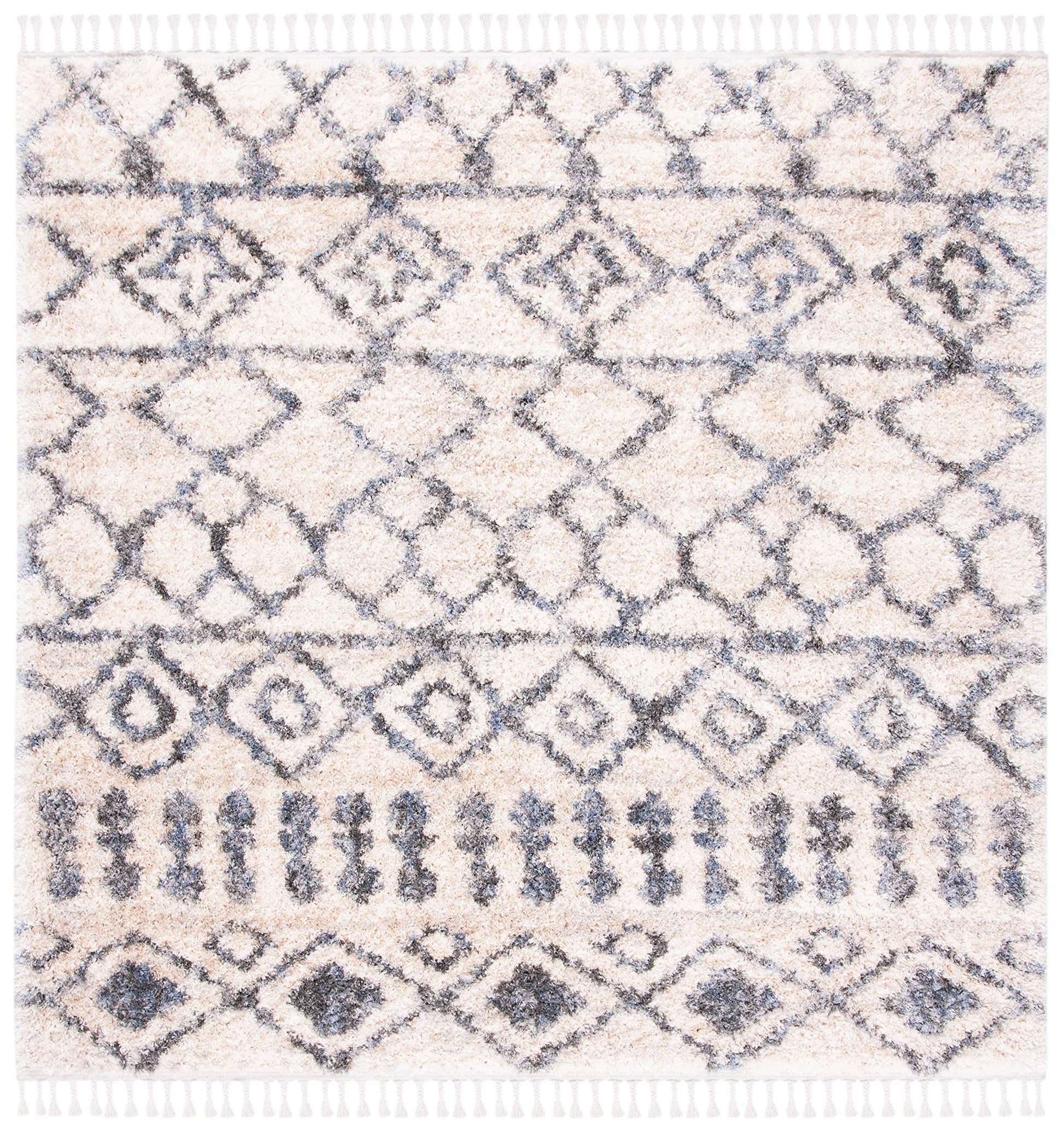 Berber Fringe Shag Collection 6'7" Square Cream/Grey BFG626A Moroccan Non