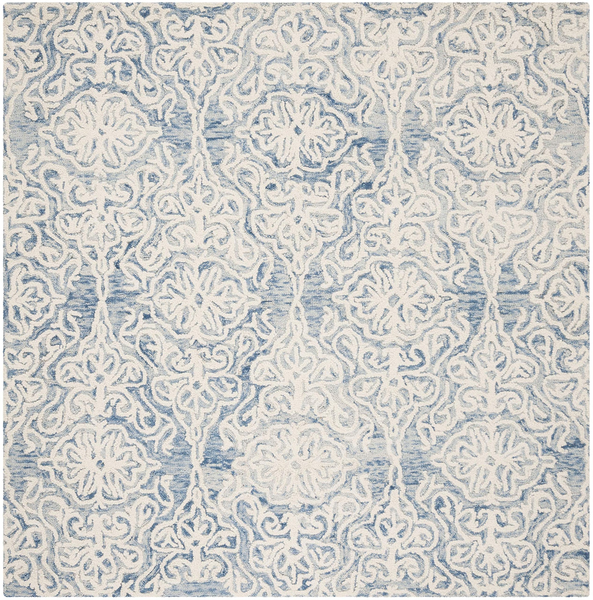 Blossom Collection 4' Square Blue/Ivory BLM112M Handmade Wool Area