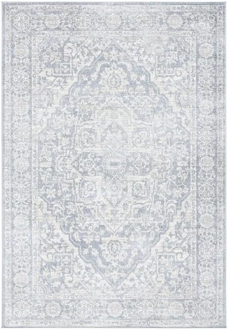 Brentwood Collection Area Rug - 10' x 13', Ivory & Blue, Medallion Distressed Design,
