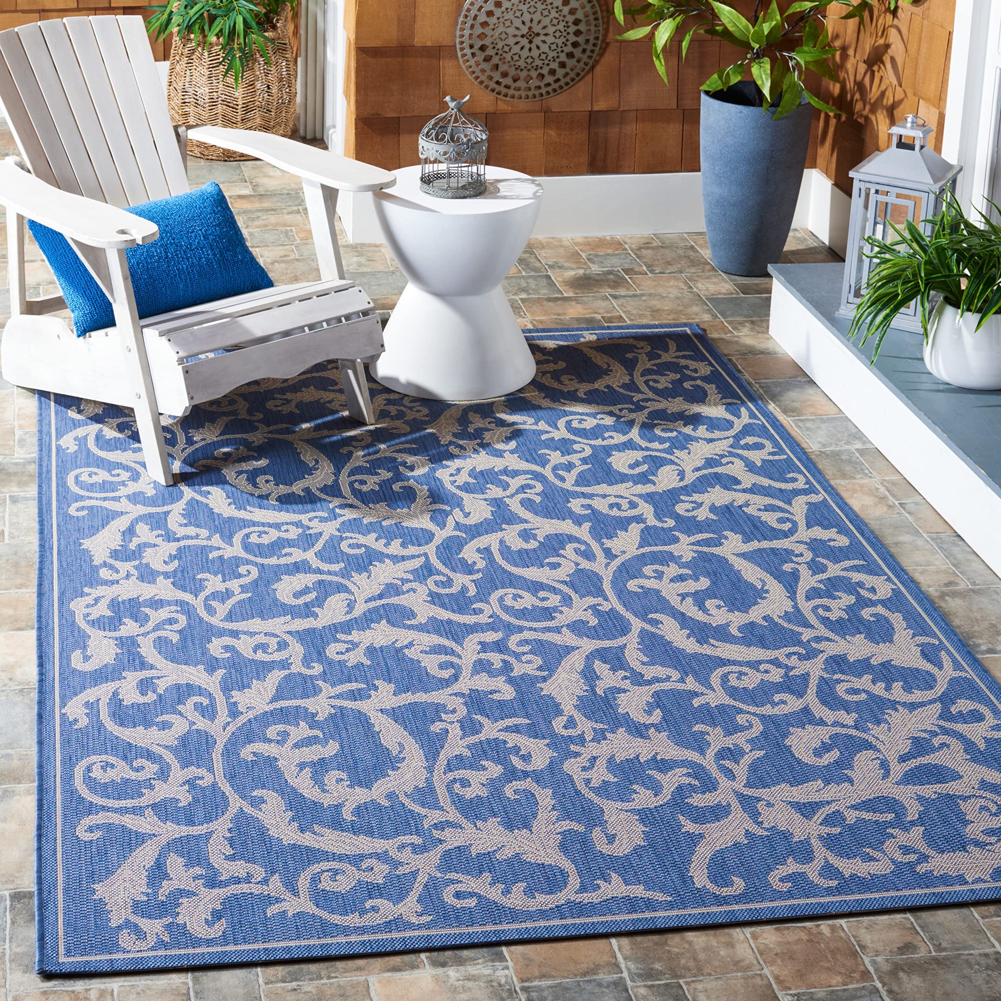 SAFAVIEH Courtyard Collection Accent Rug - 4' x 5'7", Blue & Naturaloor & Washable-Ideal for Patio