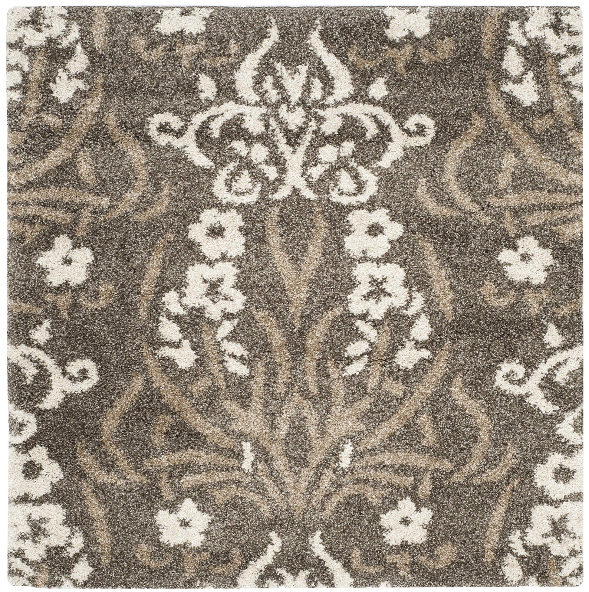 Florida Shag Collection 4' Square Smoke / Beige SG457 Floral Non-Shedding