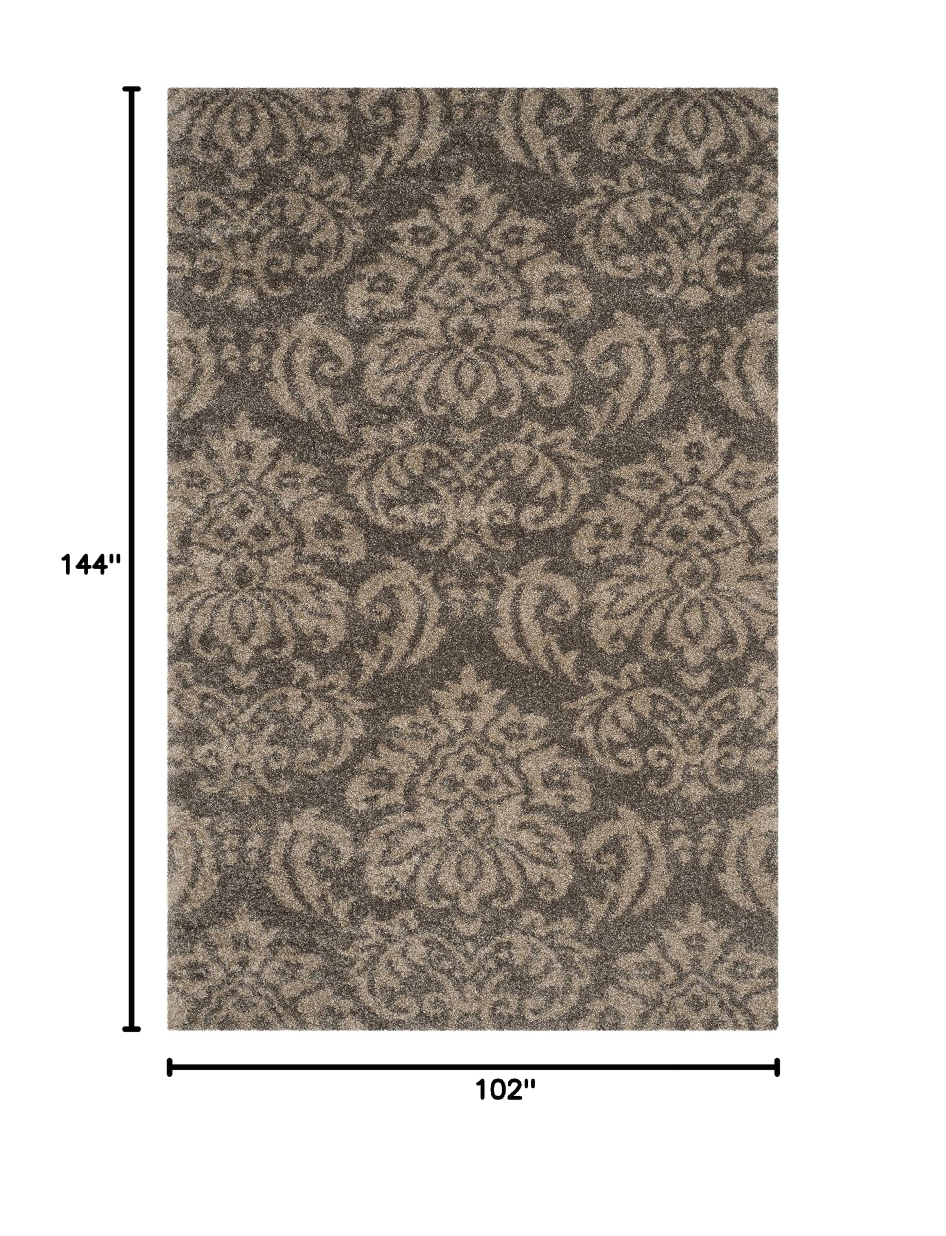 SAFAVIEH Florida Shag Collection Area Rug - 8'6" x 12', Smoke & Beige, Damask Design, Non-Shedding & Easy Care, 1.2-inch Thick Ideal for High Traffic Areas in Living Room, Bedroom (SG460-7913)