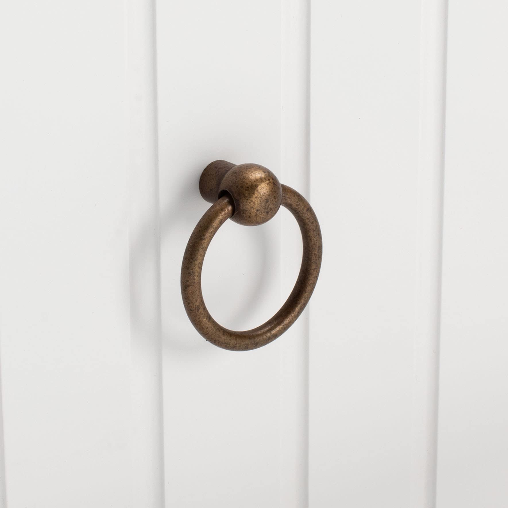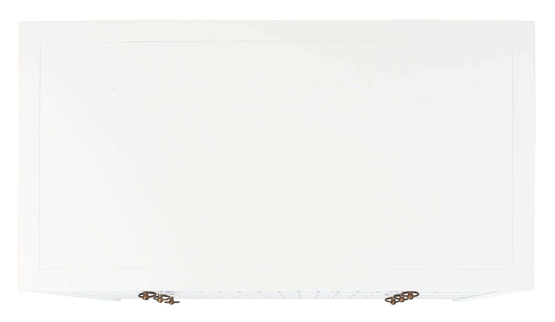 - Add a chic touch of style to your home with this storage chest; Features a mahogany wood frame with a white finish and shining brass ring pulls