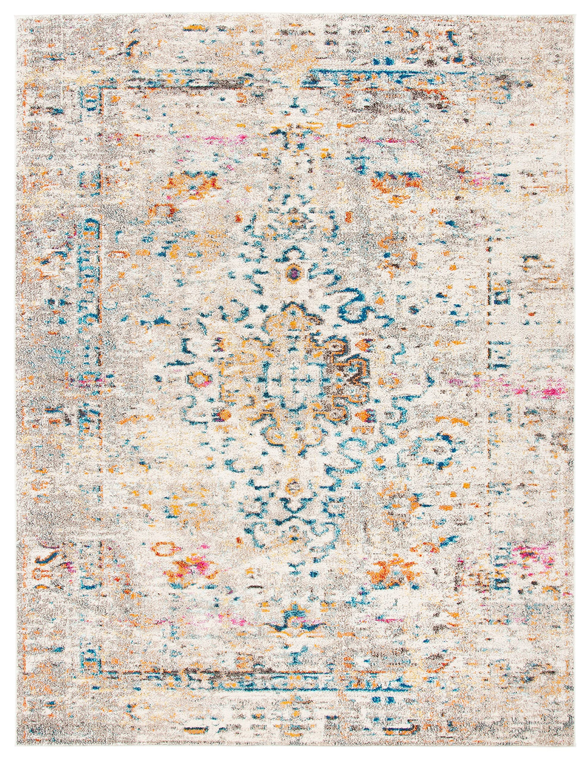 SAFAVIEH Madison Collection Area Rug - 10' x 14', Grey & Gold, Boho Distressed Medallion Design, Non-Shedding & Easy Care, Ideal for High Traffic Areas in Living Room, Bedroom (MAD474F)