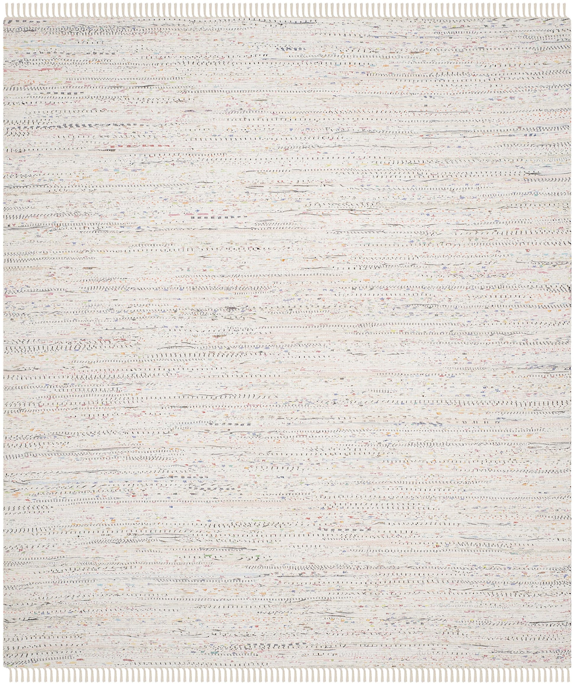 Rag Rug Collection Area Rug - 9' x 12', Ivory & Multi, Handmade Boho Stripe Cotton