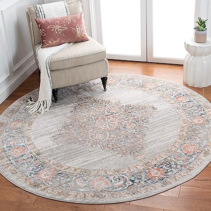 Shivan Collection 6'7" Square Grey / Rose SHV726F Shabby Chic Medallion
