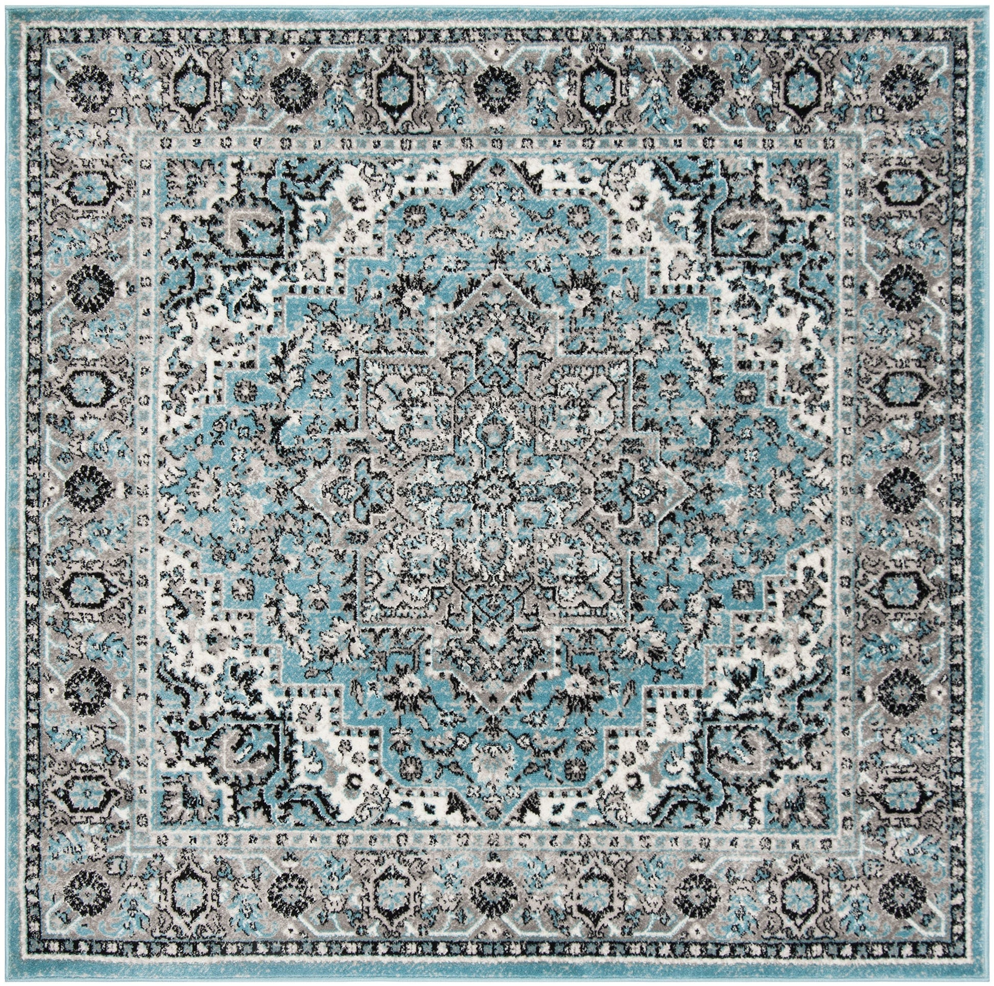 Skyler Collection 7' Square Blue/Ivory SKY126M Boho Chic Distressed Medallion Non
